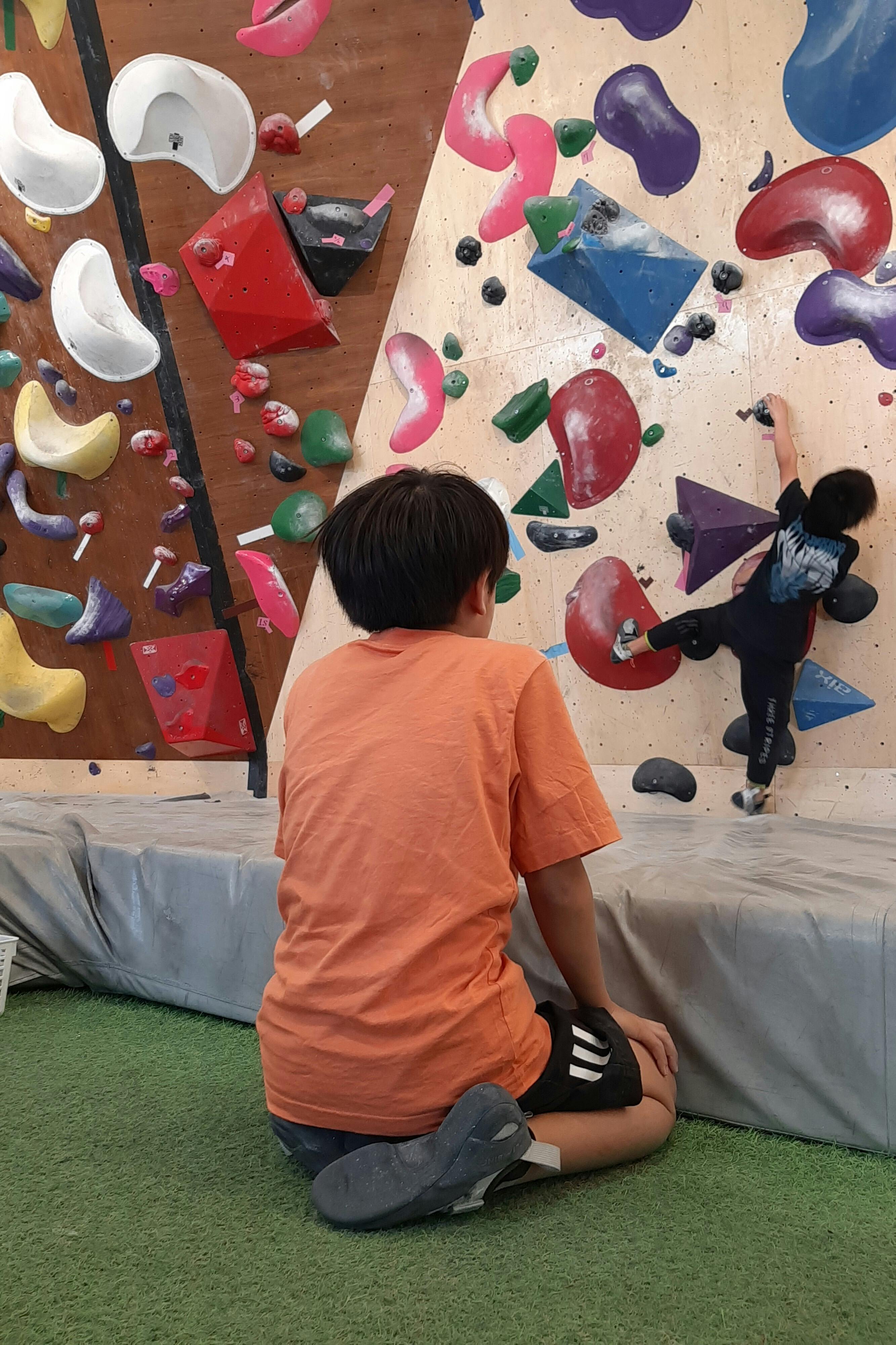 見守っている写真の前に何があったかというと、じつはお互いに教え合いながら登る練習をしていました。