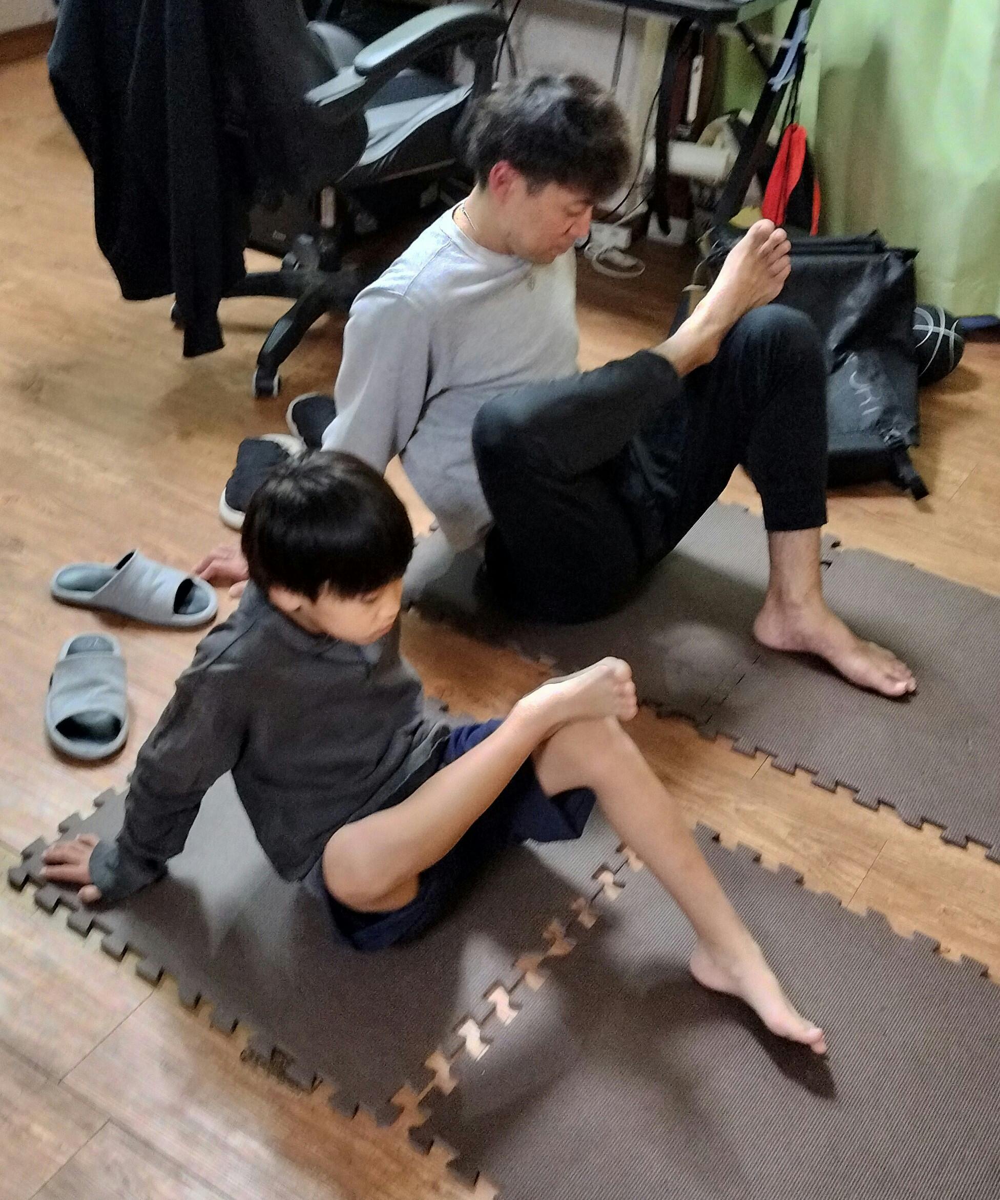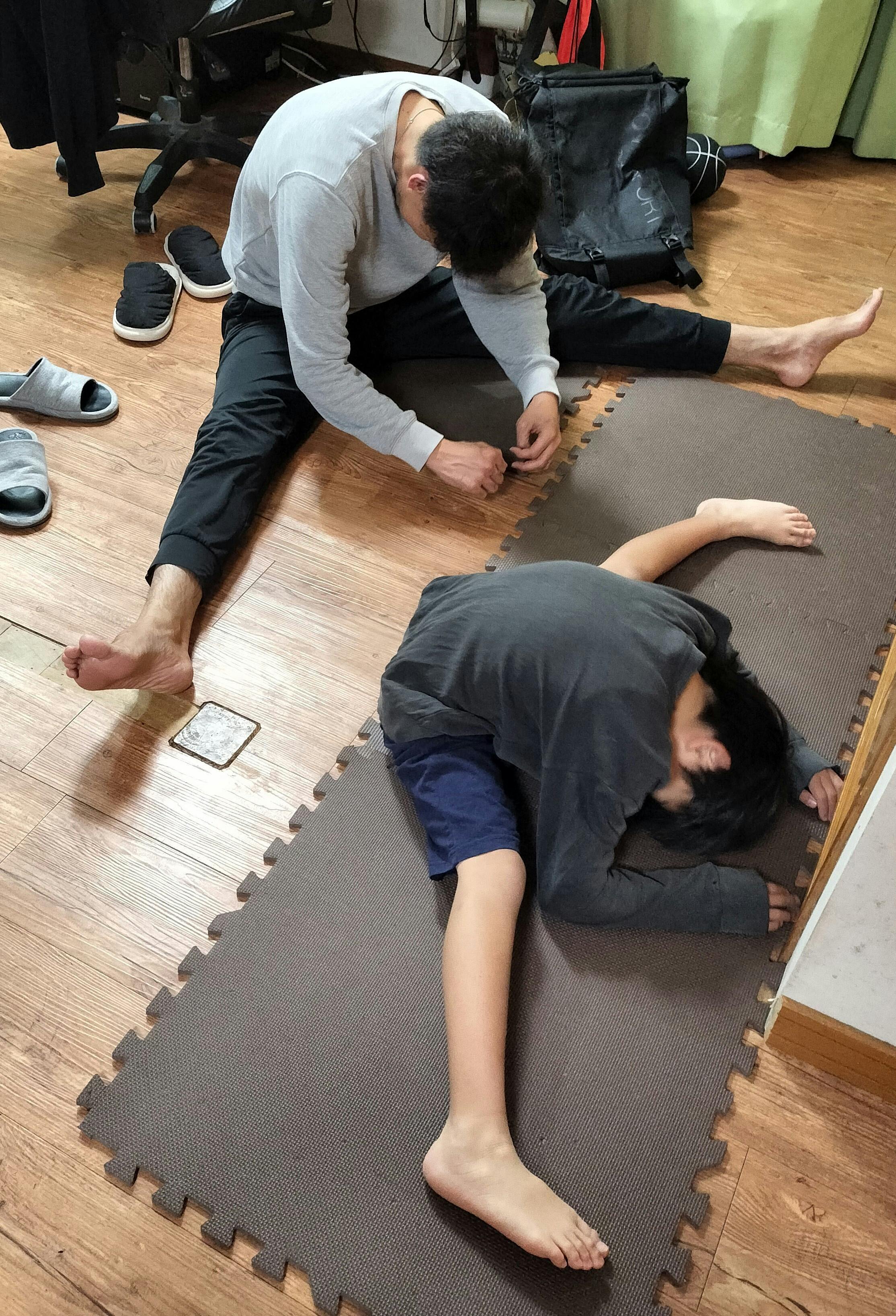 ジムで練習をする時にやるストレッチを自宅でもやってます。