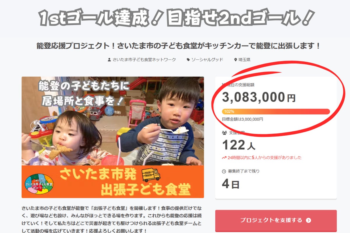 1stゴールとして目標300万円で輪島市、2ndゴールとして目標500万円達成できたら能登町でも開催したいと思っています!