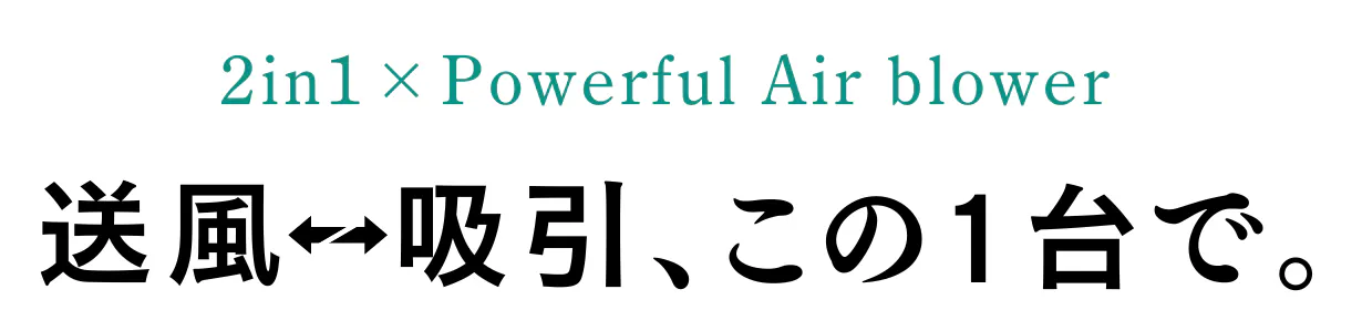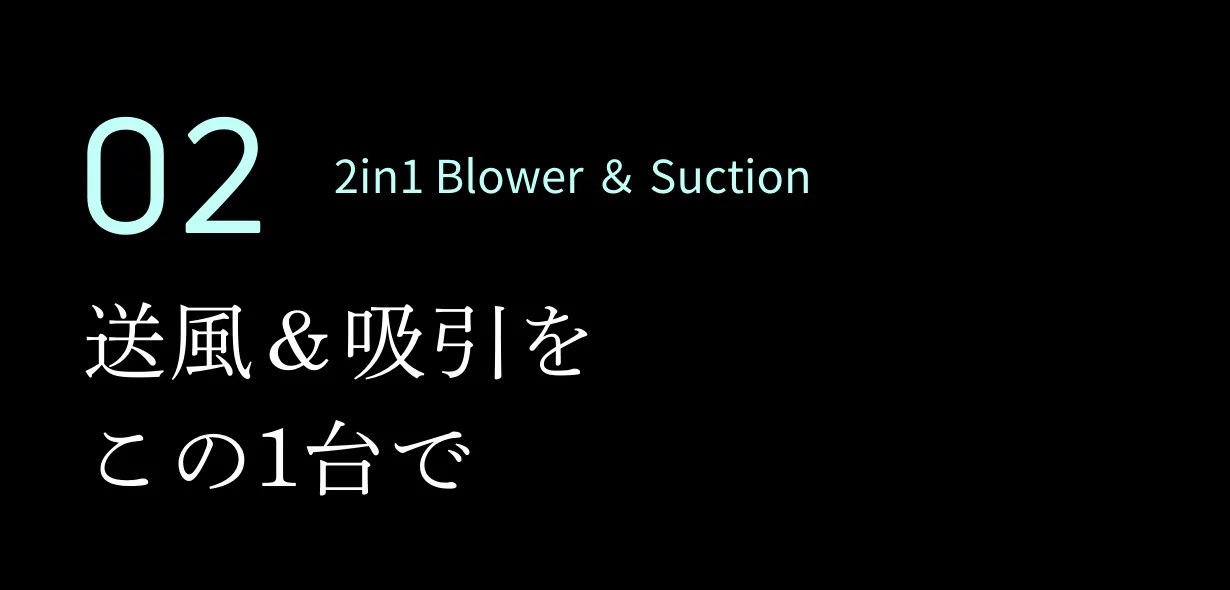本商品は、送風と吸引の2way仕様でありながらも、131,000RPM(回転数/分)&最大風速55m/sの高性能モーターを持ち、更に電源を繋ぐことなくポータブルに使うことができ、あらゆる場面で活躍する1台多役の非常に便利なプロダクトです。
