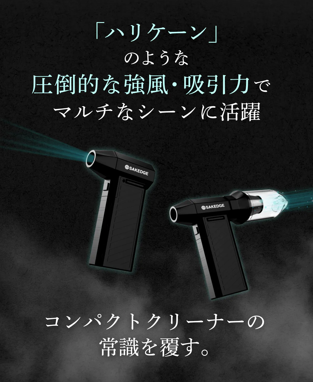 SAKEDGEコンパクトクリーナー2.0ならエアダスターで吹き飛ばすか、掃除機で吸い取るか、1台で送風&吸引どちらも自由自在です。