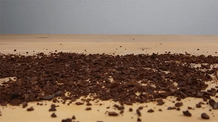 コーヒー豆の吸引。逆止弁が付いているためゴミが散らばりにくく、吸い込んだゴミも落ちません。