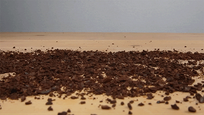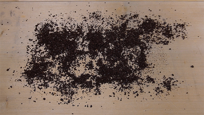 コーヒー豆の吸引。逆止弁が付いているためゴミが散らばりにくく、吸い込んだゴミも落ちません。