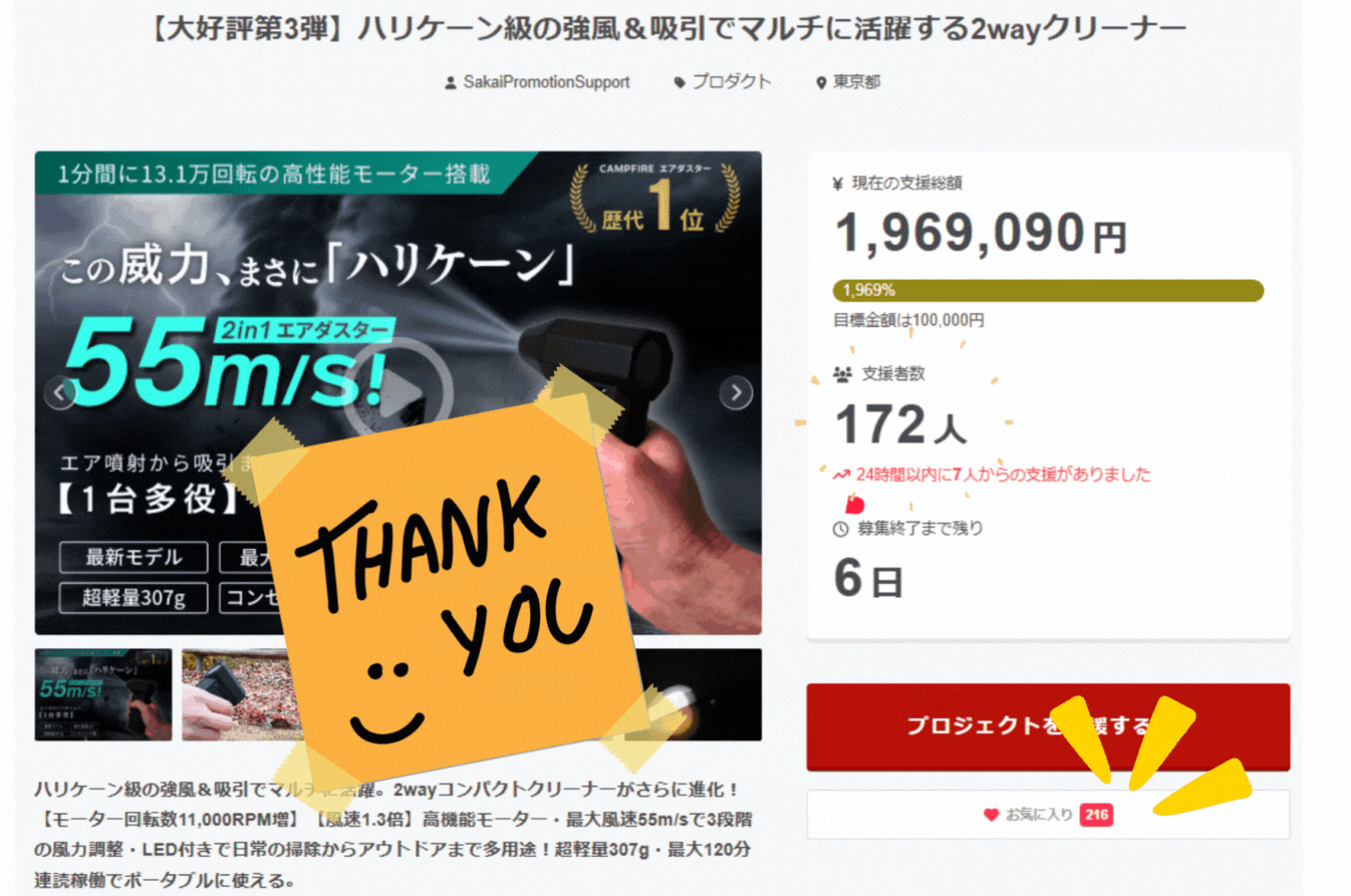 尚、割安なリターンは未だございますが、大変嬉しいことにお気に入り数も着実に増加しており、ご支援の検討をいただいている方が沢山いることが推測されます。実際に毎日じわじわとご支援をいただき、段々とリターン在庫数も減ってきておりますので、ご興味を持たれた際は是非お早目のご支援をご検討いただけますと幸いです!