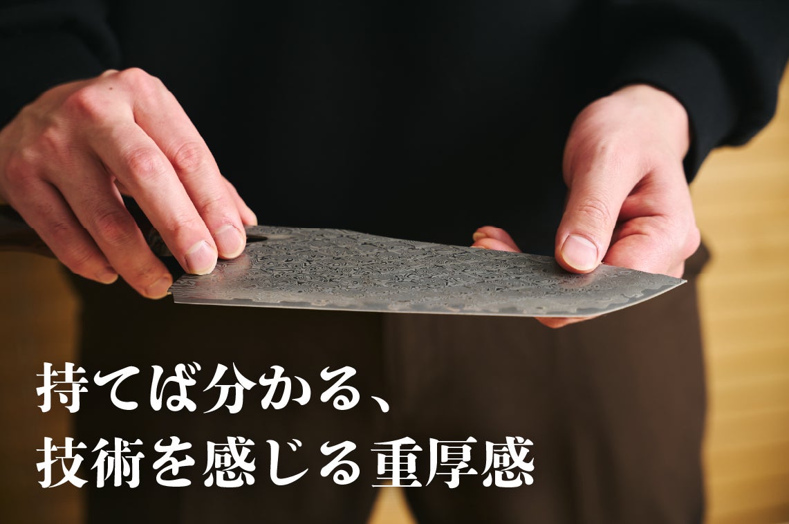 高級素材のVG10を使った103層のダマスカスを重ねるという、極めて稀少な工程を経て作られる。