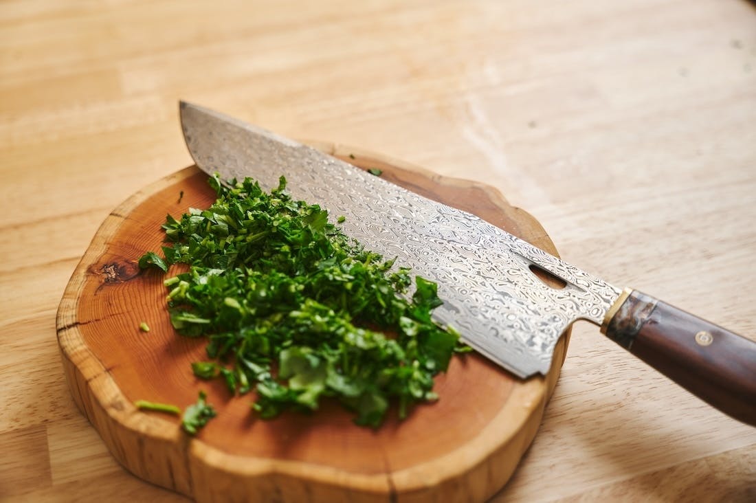 高級素材のVG10を使った103層のダマスカスを重ねるという、極めて稀少な工程を経て作られる。