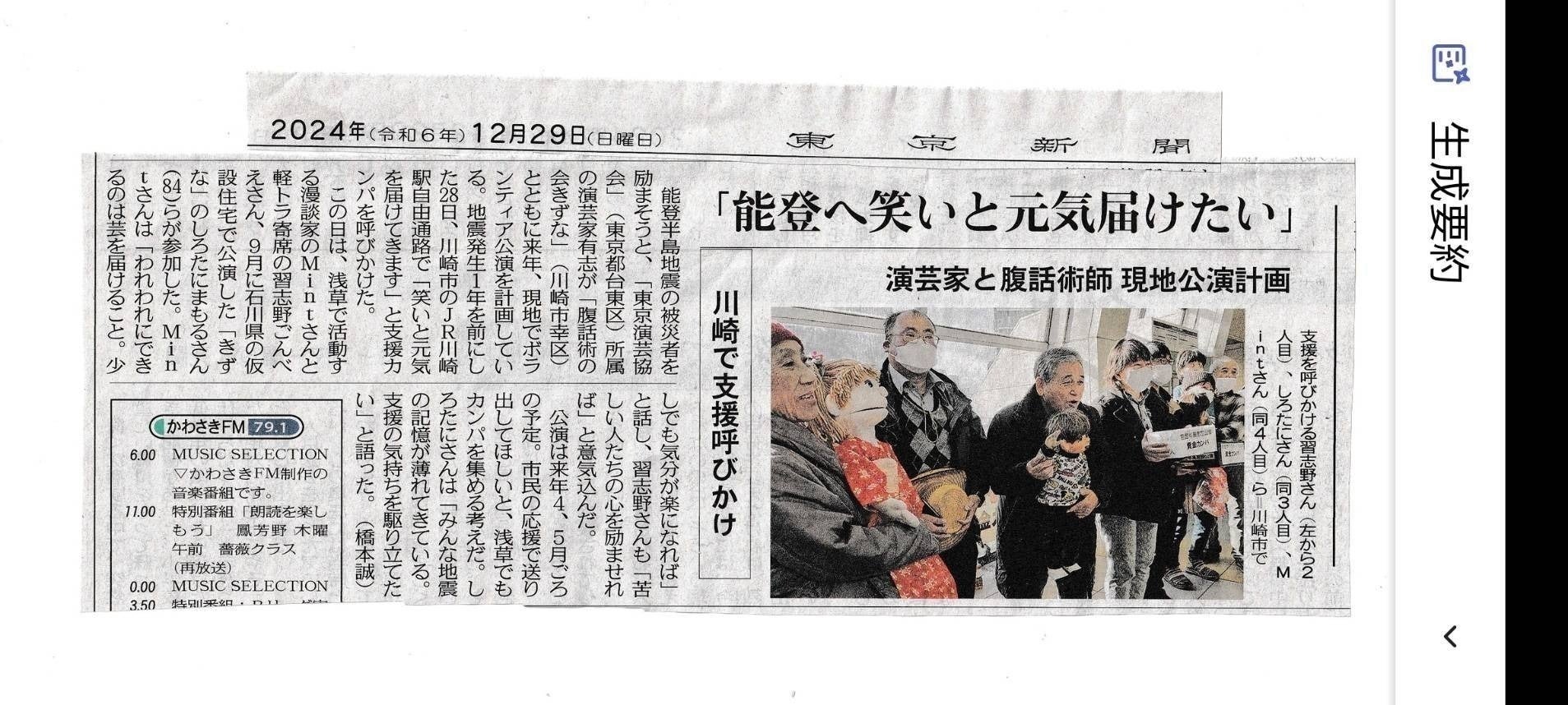 能登ボランティア公演に皆様のご支援宜しくお願い致します。