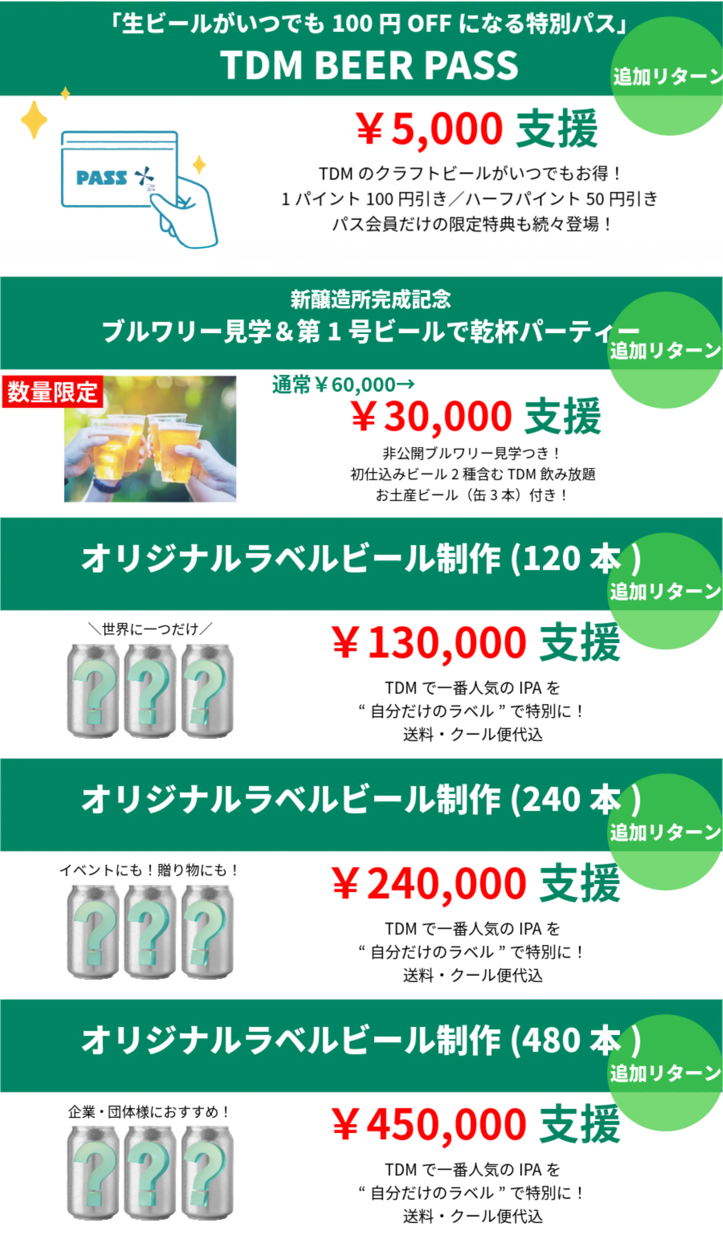 - 上記以外にも、ご支援金額に応じて、様々なリターンをご用意しています。