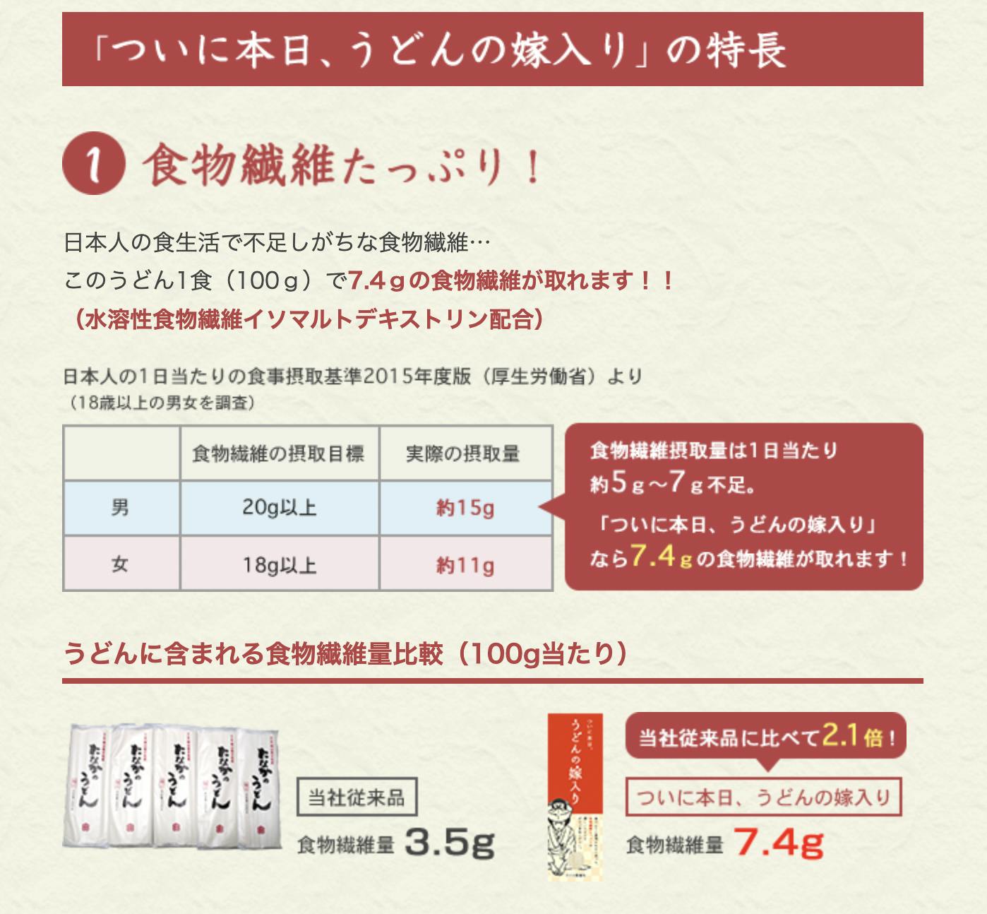 日本人の食生活で不足している食物繊維を摂取でき、なおかつ美味しいうどんを作ることを目指し、