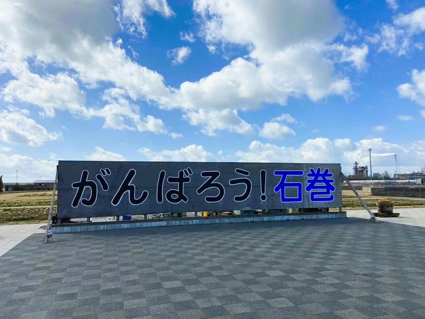 石巻に行ったことがある方なら、一度は立ち寄る、この「がんばろう!石巻」の看板。