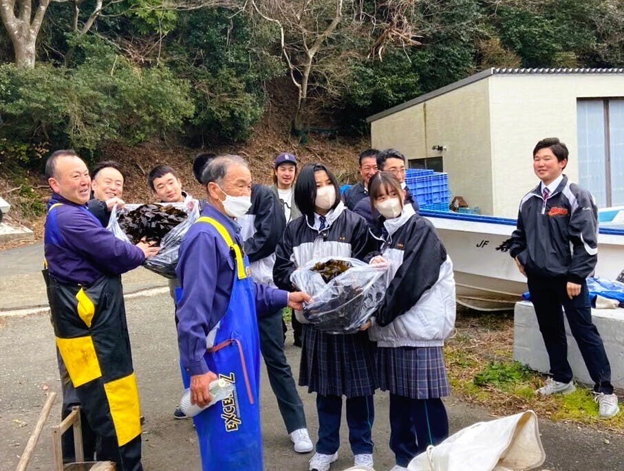 昨年度の2日目は早朝にホテルを出発して、石巻市の北端、十三浜でワカメの刈り取りの見学を行いました。何気なく日頃食卓で目にするワカメが、海から上がってくる瞬間、高校生たちの表情は忘れられません。一年の中でも一番忙しい時期にお時間を割いてくださったマルナカ遠藤水産様、いつも本当にありがとうございます。