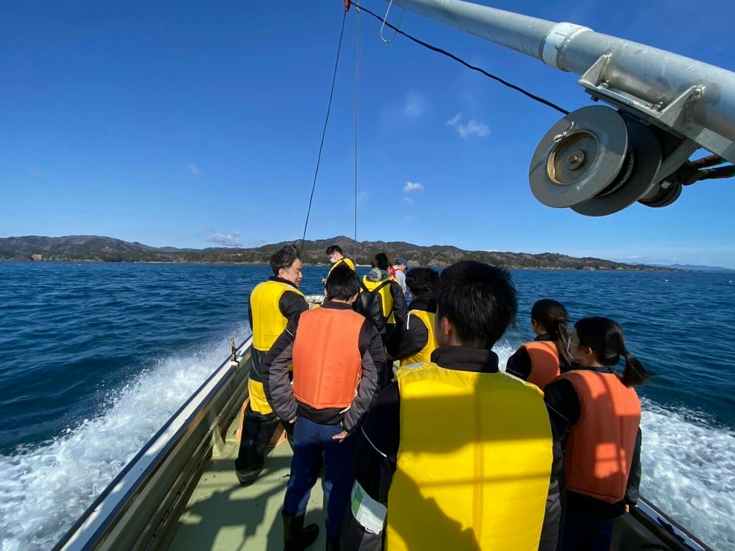 プログラム二日目は早朝に宿泊先を出発して、石巻市北上地区へ。ワカメ養殖の現場を見学しました!
