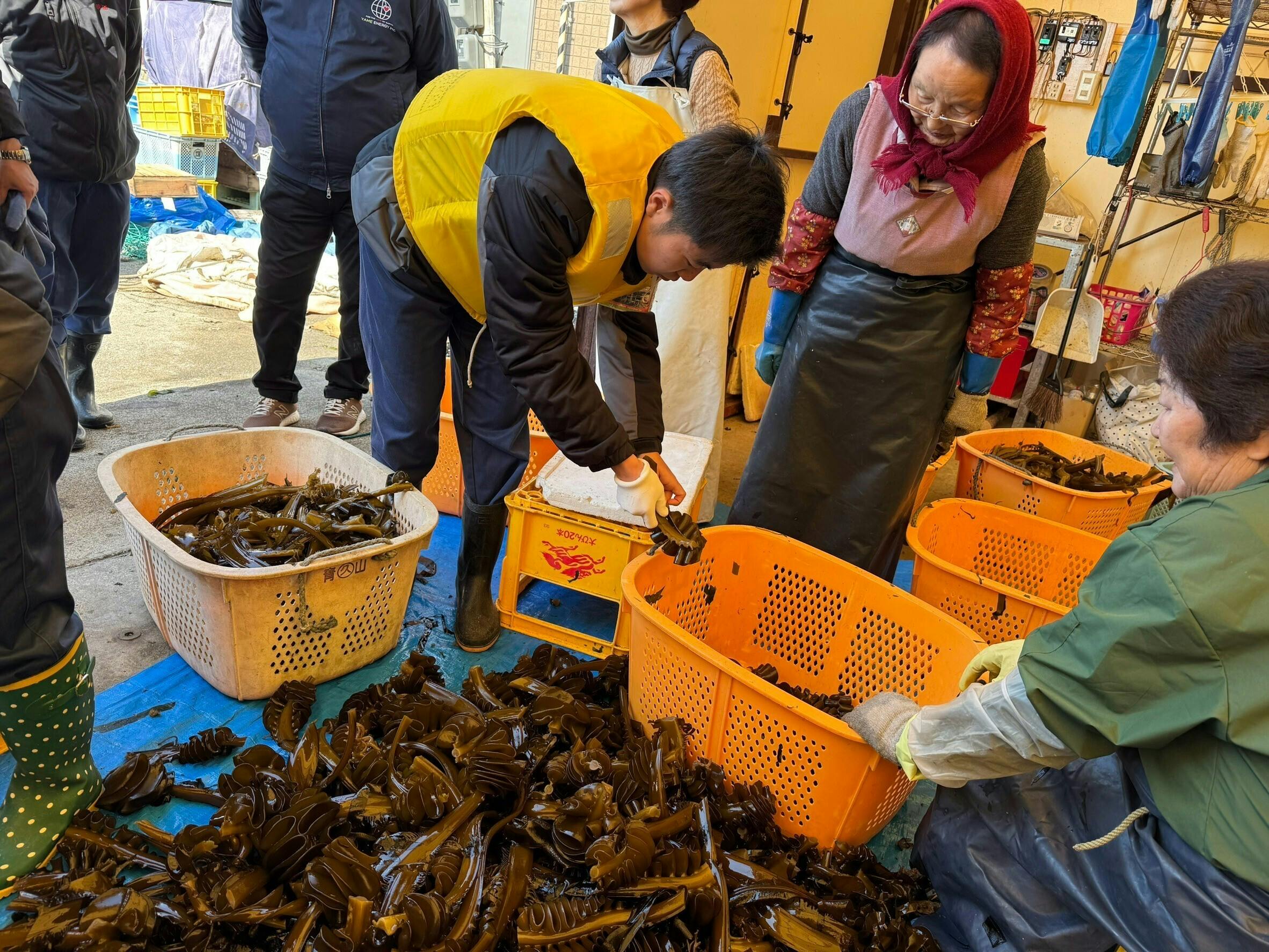 私たちの日常の食卓に上がるワカメの生産工程の見学も行いました!