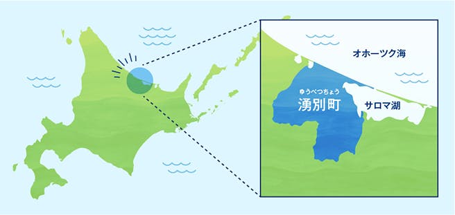 湧別町は、北海道の北東部、オホーツク海沿岸の中央にあり、日本三大湖の一つで日本一の汽水湖である網走国定公園サロマ湖を擁しています。町の中心を一級河川の湧別川が流れ、肥沃な大地と豊かな自然に恵まれ、酪農・畑作を中心とした農業、沿岸養殖を中心とした漁業、豊富な森林資源を活用した林業などの第一次産業を基幹産業とする町です。