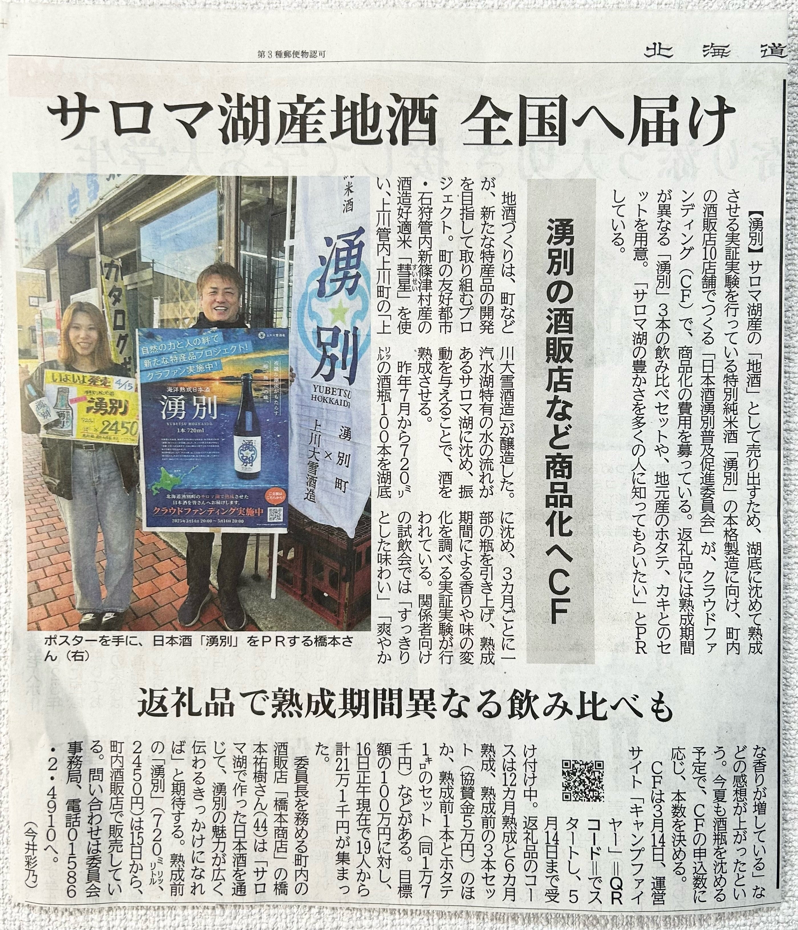 この度は日本酒「湧別」普及促進委員会のクラウドファンディングを