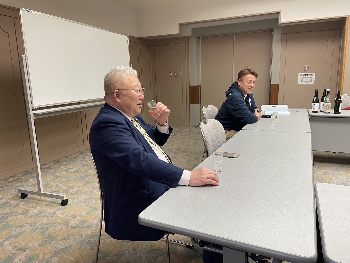 5月1日に行われました海洋熟成9ヵ月のテイスティング会。湧別町長、副町長はじめ、町職員や販売各店舗様、(株)北海道海洋熟成本間様とともに実施いたしました。
