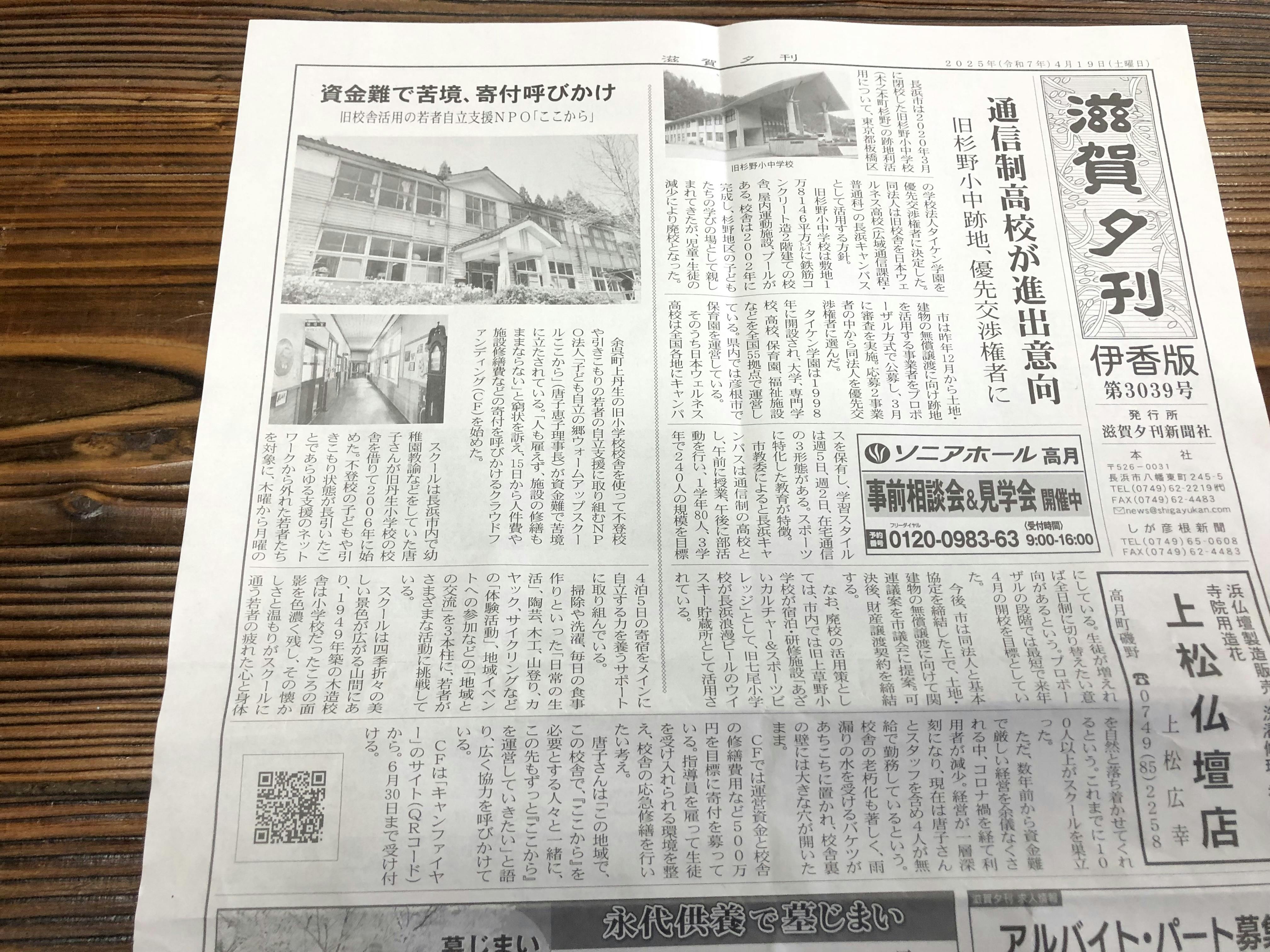 先日、中日新聞や滋賀夕刊【長浜版】滋賀夕刊【伊香版】など