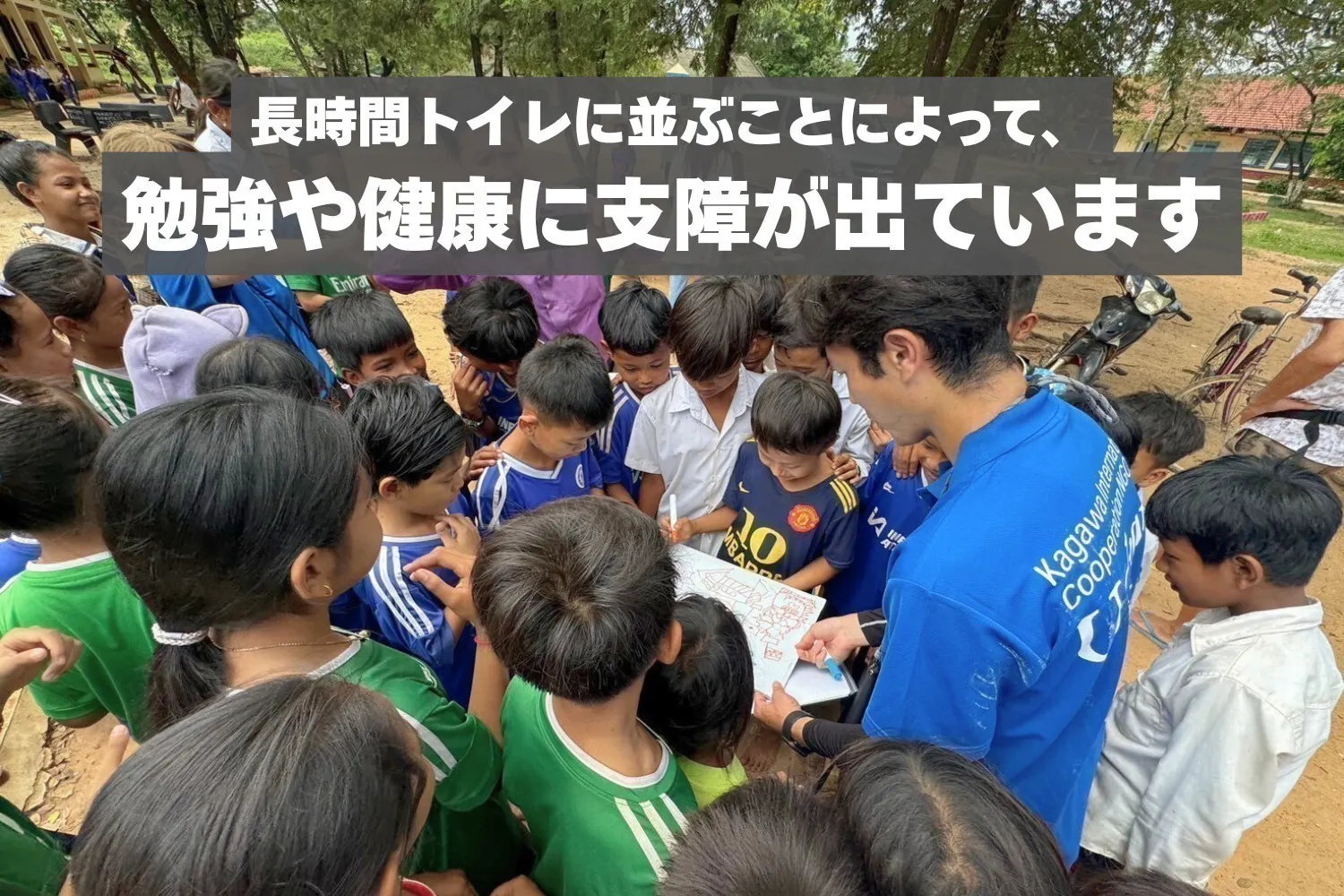 先生方からのお話により、休み時間内にトイレに行けず、授業開始時刻に遅れてくる児童がいることが分かりました。 授業に遅れてしまえば、その後の授業内容の理解に影響を及ぼします。 また、トイレを我慢する児童もおり、授業に集中出来なくなってしまう場合もあります。学校以外の時間では家族と一緒に働いている子どもも多く、学校が勉強できる唯一の時間である児童も少なくありません。そのため、学校での集中した学習時間の確保がこどもたちの学習環境を整える事に繋がると思います。