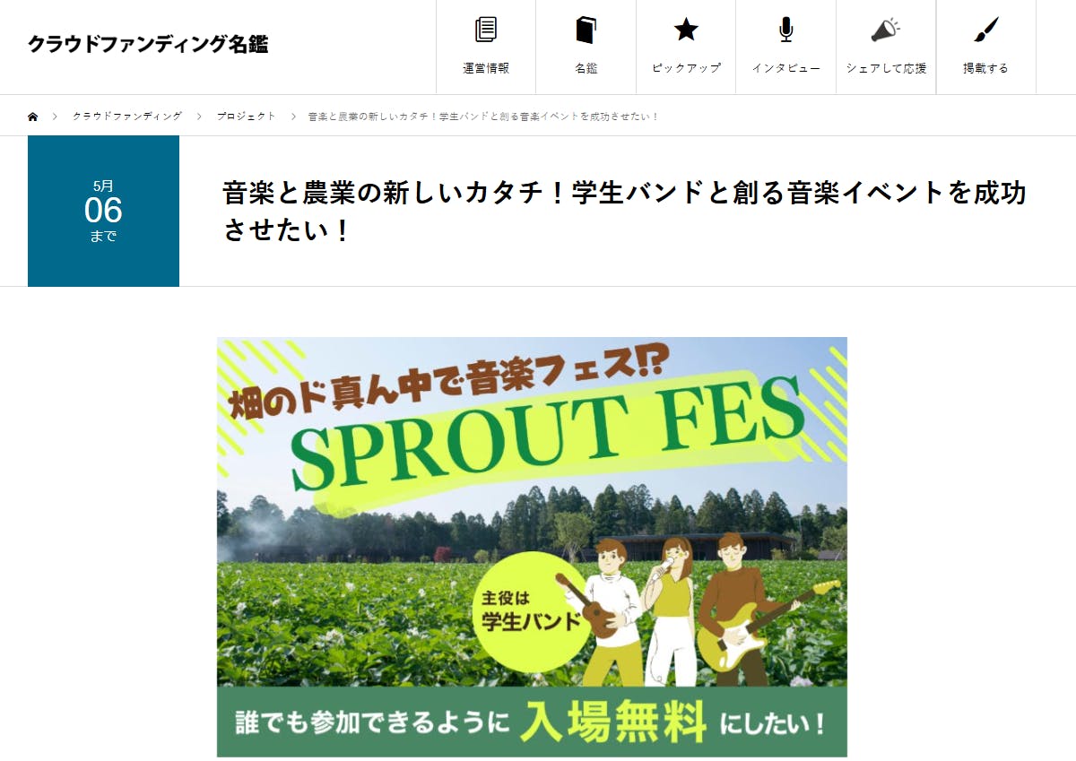 2025/04/23 11:51目標金額32%達成!!!ご支援いただいた皆さま、本当にありがとうございます。この度、『クラウドファンディング名鑑』さんに本プロジェクトを掲載していただきました!https://crowdfunding.meikan.org/project/campfire-827461/「クラウドファンディングをもっと身近に」を掲げたクラウドファンディング横断検索サイトです。こういったお力も借りながら、さらに多くの人にこのプロジェクトを知ってもらえるよう、まだまだ頑張ります!クラファン終了まで残り2週間を切りました。「SPROUT FES」成功のためには、皆さまの力が必要です!!応援・拡散お願いいたします! もっと見る