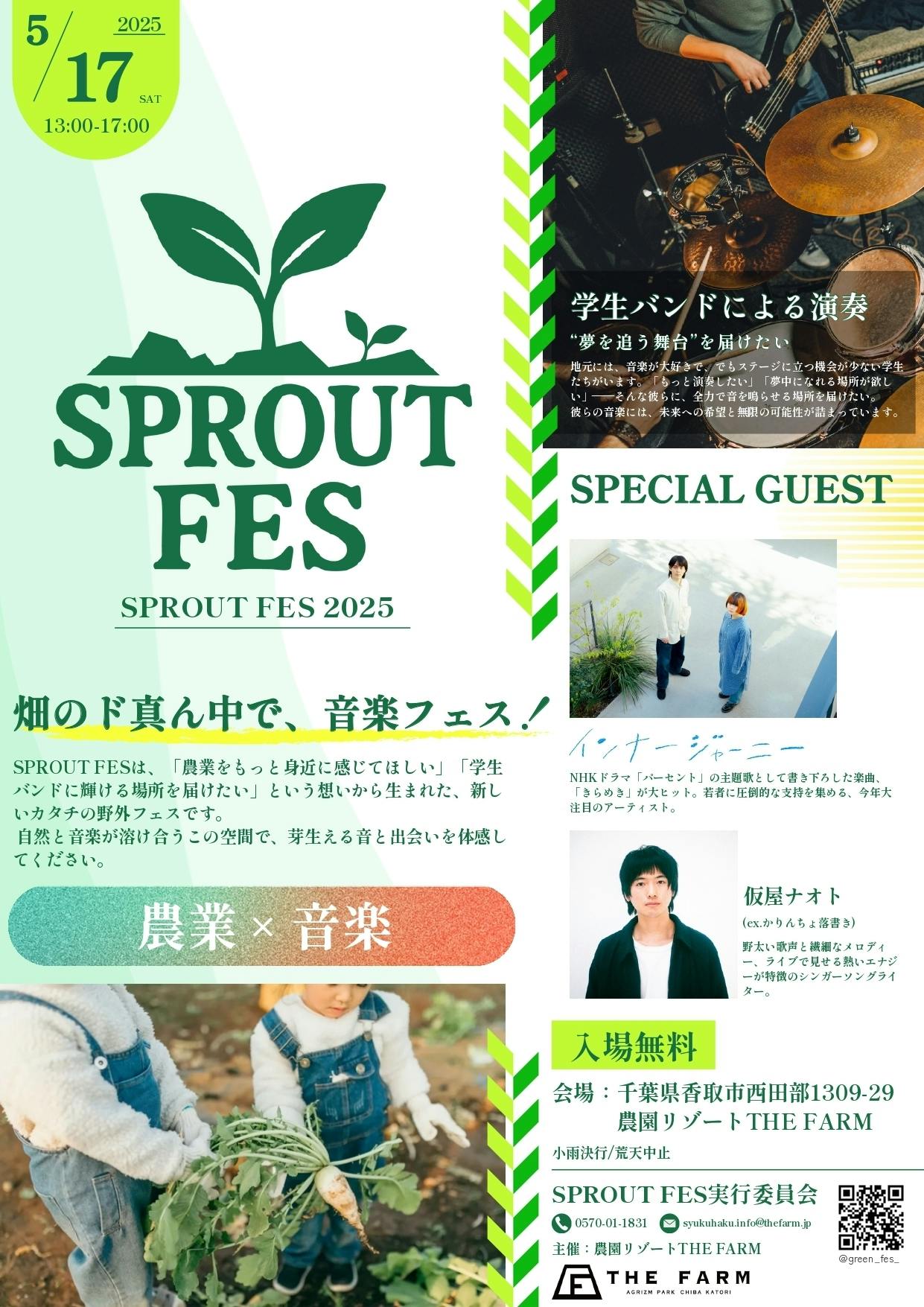 2025年5月17日に、私の職場である千葉県香取市の農園リゾートTHE FARMにて音楽イベント『SPROUT FES』を開催します!