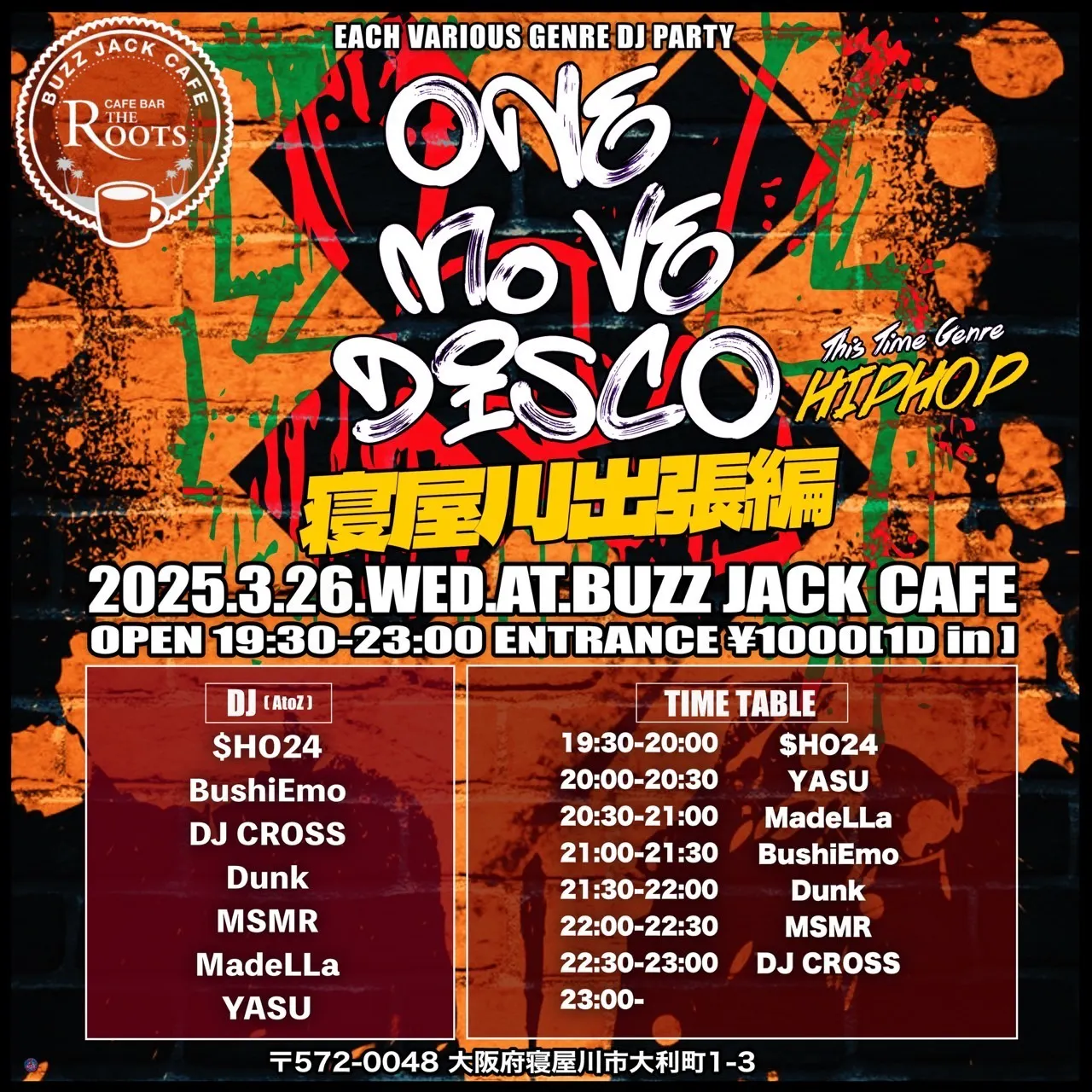 2025/03/24 18:272025.3.26(水) EACH VARIOUS GENRE DJ PARTY「ONE MOVE DISCO」@BUZZ JACK CAFEOPEN 19:00ADM:¥1.000(1D in)数あるパーティーがある中でパーティーには欠かせない存在がDJである。DJがいなければ何も始まらない。ラッパーも、ダンサーも、音がなくても出来るだろう。しかし、音があって、音楽とゆう羽があってそれらは空を飛べるのである。最近はパソコンが主流になり、誰でも気軽にそして簡単に音を流せたり、創ったり出来るようになりました。それに関しては喜ばしいことですが、しかしながら、本当にそれでいいのか?とゆう疑念は、ずっとモヤモヤしたこの気持ちの奥には、昔、1枚のレコードのためにCD.レコード店を何軒もはしごして探したり、情報が少ない中、少しでも知りたくてクラブに足しげく通ったり。そういった、現在では無駄にも思えるようなことこそが、1枚、1曲にかける想いであり、無駄こそが最大の努力であったりしたのだ。そうか、無駄こそ美の結晶なり。か。無駄なことなんてひとつもない。自分で探し出したこの一枚でみんなを盛り上げてやる!そんな想いで針を落とす曲は、やはりパソコンでは「出ない」し、「響かない」から「届かない」。DJのセンスや意識が、その一枚一曲に乗るからこそ、バイブスやグルーヴが生まれ、僕らはノルことができるのである。DJメインのパーティーは少ないので、平日ではありますが是非遊びにいらして感じてくらさいな( ^ω^ )たくさんの方々のご支援ご声援、誠に感謝です。悔いのないように。よりよい自分で未来を迎えていきましょう! もっと見る