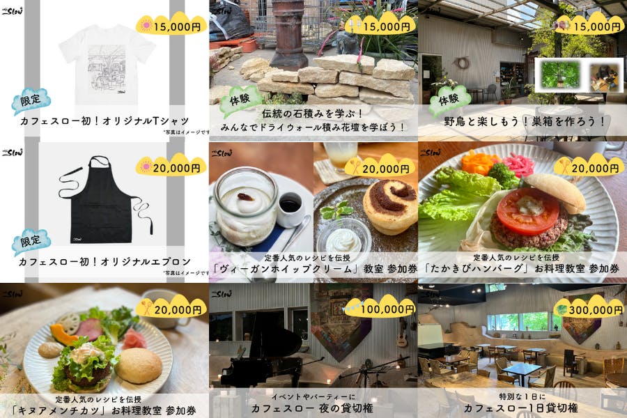 お近くに暮らしている方もそうでない方も、カフェスローを身近に感じていただきたい、そんな想いで様々なリターンを考案しました。