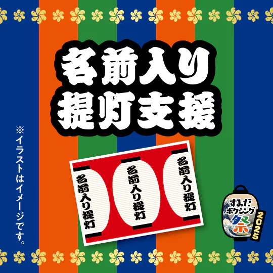 すみだボクシング祭りといえば、会場を華やかに彩る“ちょうちん”がトレードマーク。 今回のリターンとして、ご支援いただいた方のお名前を記載したちょうちんを会場内に掲示させていただきます。 イベント当日は、自分の名前入りちょうちんを探す楽しみも味わえますよ!