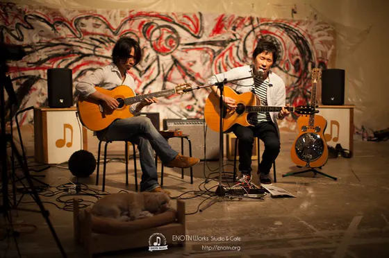 当初から月2回定期的にオープンマイク方式(誰でもステージに立って、演奏に限らず何かを発表できるルール)の『ENOTN MIC』というイベントを開催しており、毎回その日のライブの様子をUSTREAM生放送で世界に向けてネット配信しています。参加者それぞれの遠方のファンの方にも大変ご好評を頂いております。