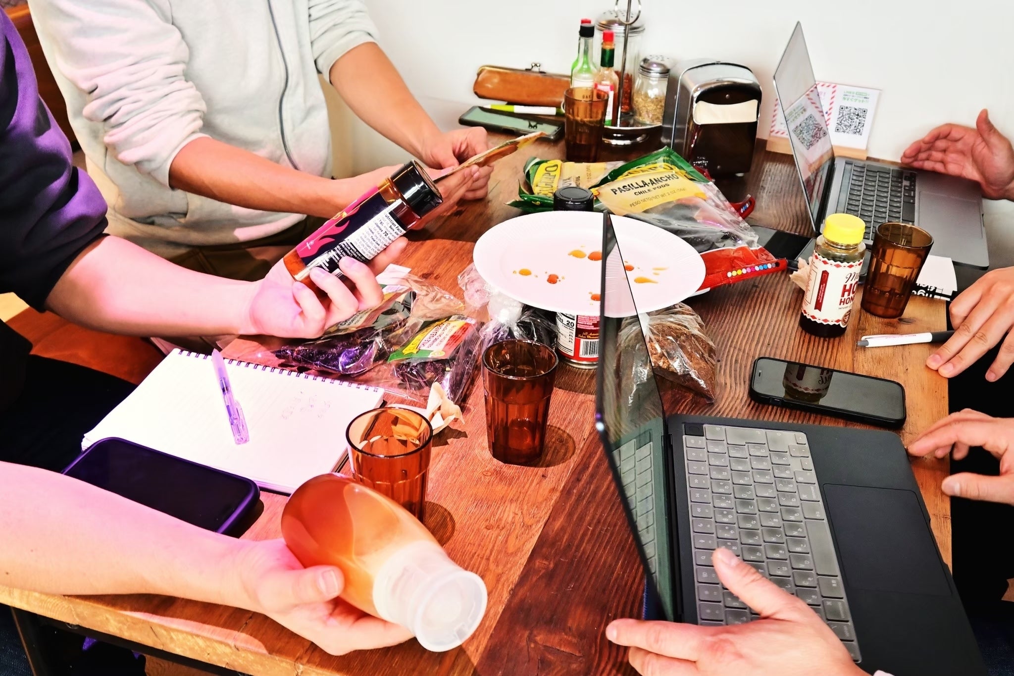 以前から企んでいた「甘くて辛いハチミツ」を製品化しようと再び集まってミーティング