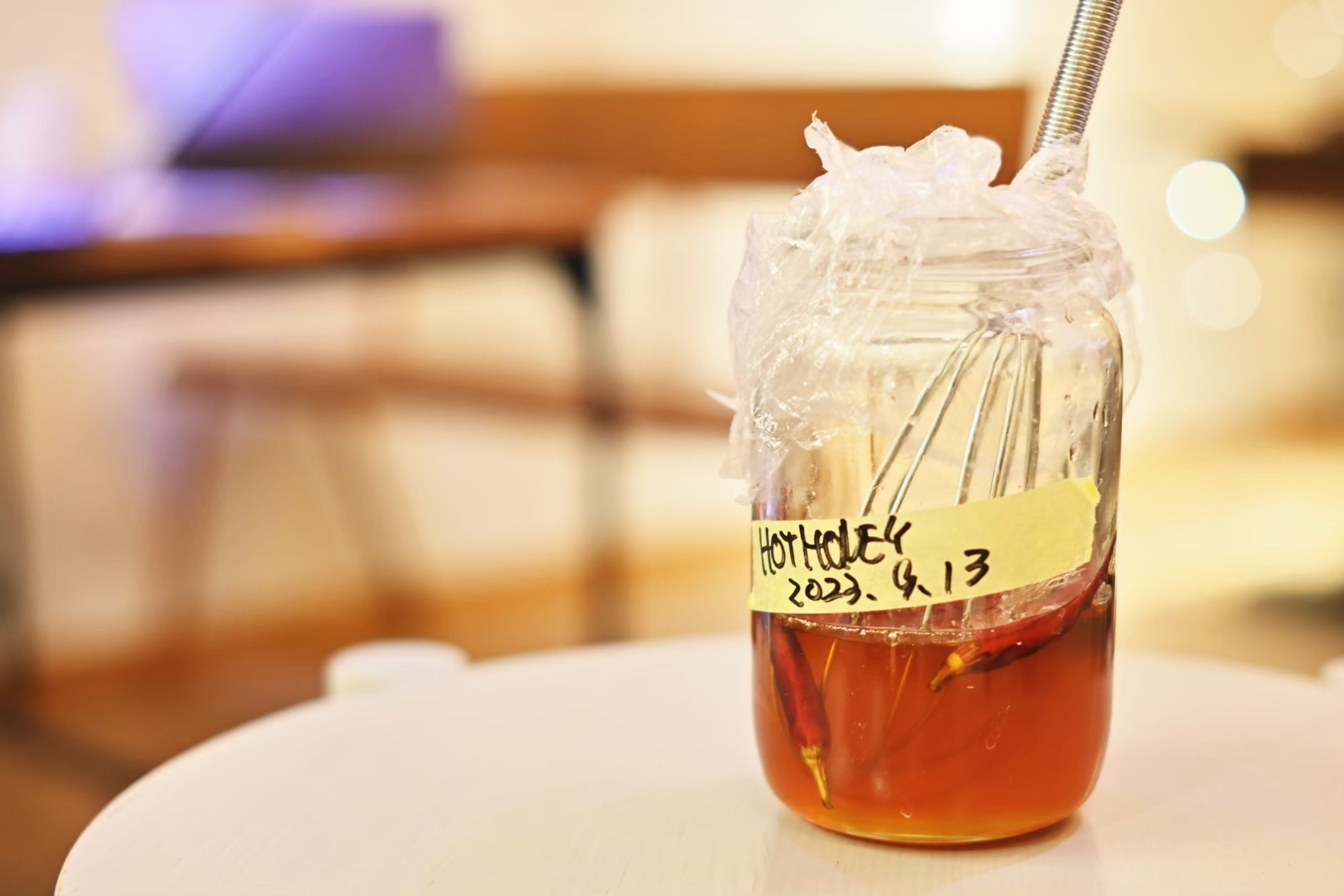 唐辛子を漬け込んだお酢とハチミツを混ぜてみる
