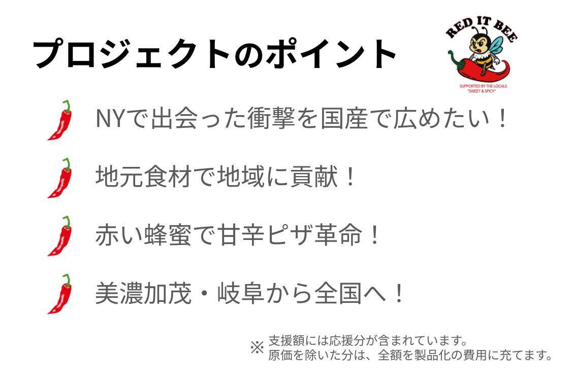 はじめまして!私は、地元岐阜県美濃加茂市で生まれ育ち、ミューヨークスタイルのピザ屋を営んでおります。そしてこの地域の魅力的な素材を世界に届けたいという思いで今回、クラウドファンディングを通じて新たな挑戦をスタートします。それは、美濃加茂市の蜂蜜を使った「赤い蜂蜜」の開発です!
