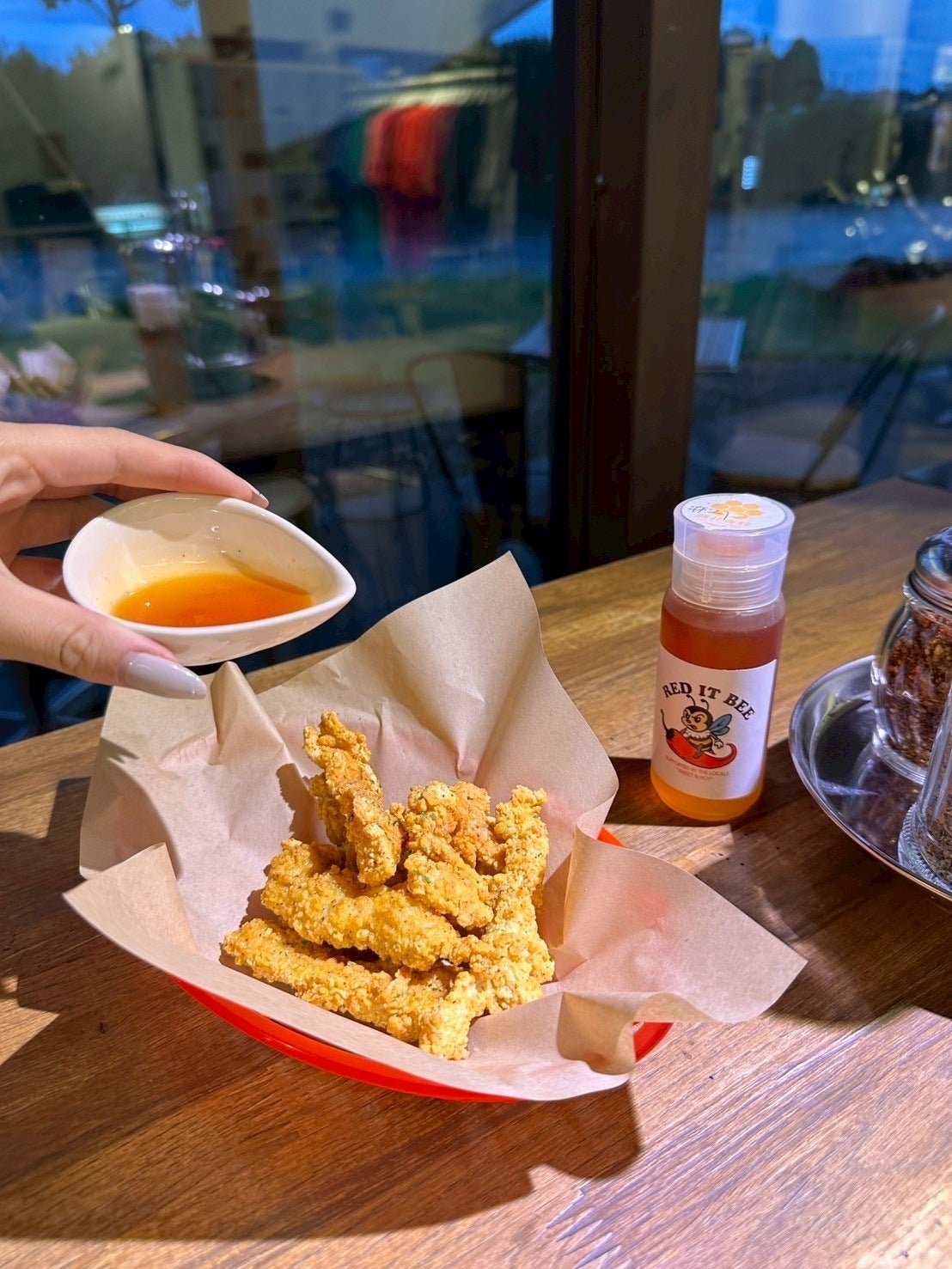 赤い蜂蜜の正体は、チポトレ(燻製唐辛子入り)の蜂蜜ソース。
