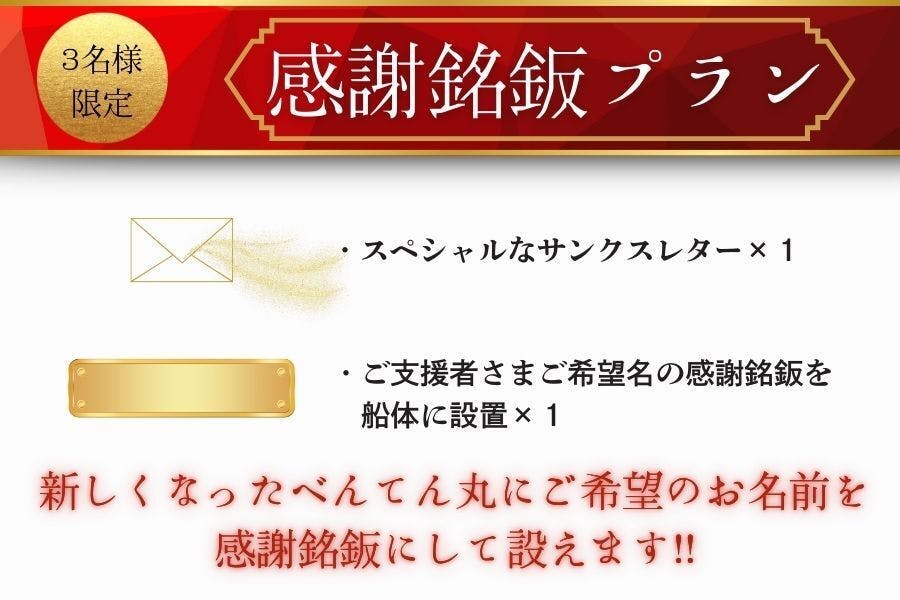 特典②船体にお客様のご希望の名前の感謝銘鈑の設置×1