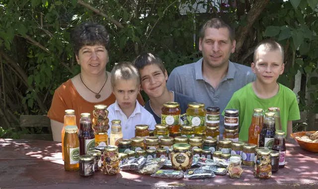 Nagy Balazsさんはハンガリー・パンノンハルマの代々続く養蜂家で、Nagyさん本人は2001年から養蜂を始めました。3人のお子さんも養蜂家を目指しており、Nagyさんは妻子とともにさまざまなハチミツなどを作っています。また、ハチミツを発酵させたハチミツ酒の原料も提供しており、自社サイトで販売しています。