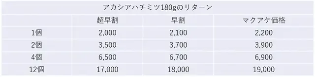 2025/08/30 17:192月に行ったNagyさんのアカシアハチミツですが、各所で好評につき、1000gの大容量商品を作り、近くプロジェクトを公開します。180g瓶は1g税別10円でしたが、大容量化によって税別7円に下げることができました。ハチミツを大量使いされる方はぜひご購入ください。https://camp-fire.jp/projects/876785/viewよろしくお願い致します。 もっと見る初支援、ありがとうございます!