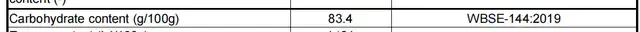 栄養成分表示100gあたり:エネルギー334kcal、たんぱく質0.2g、脂質0g、炭水化物83.4g、食塩相当量0.0g