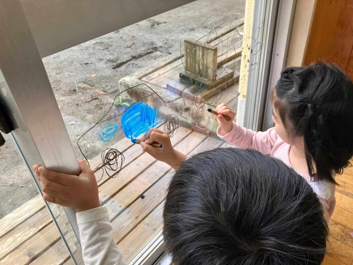 窓にお絵描きしていれば汚されても大丈夫。叱ることもありません。