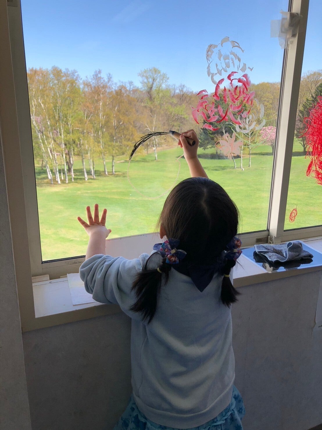 窓にお絵描きしていれば汚されても大丈夫。叱ることもありません。