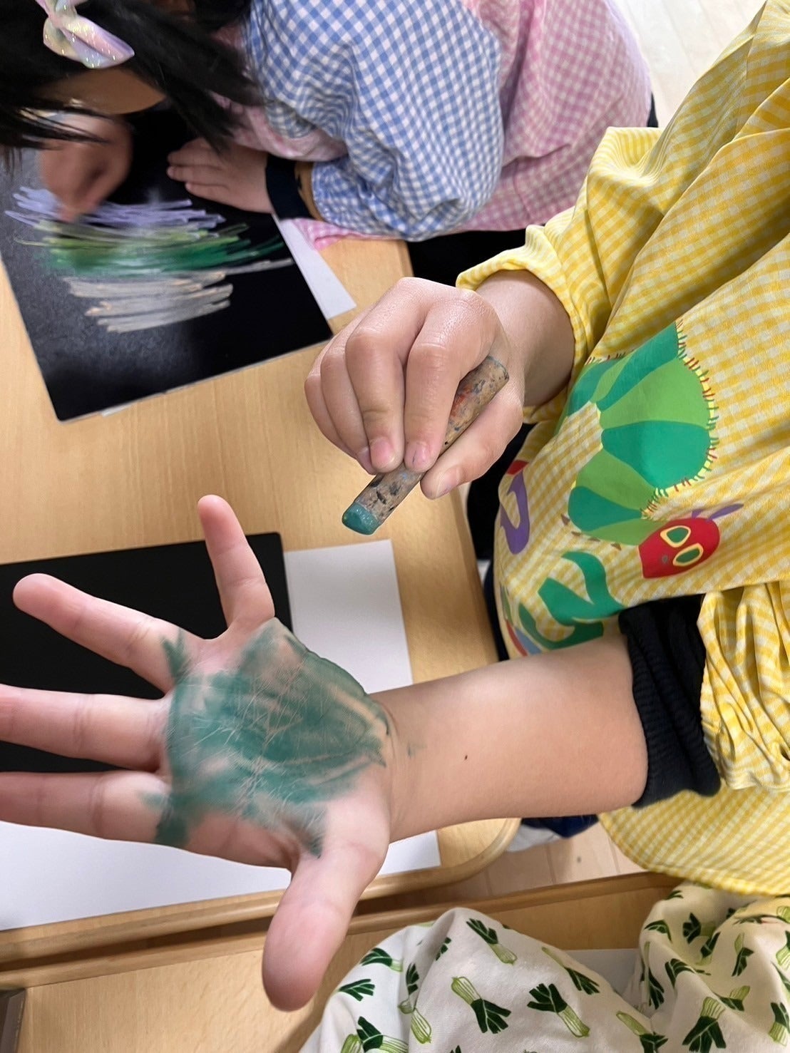 「もっとこうしたら?」「テーブル汚さないようにね」と母として子どもたちに言ってしまうこともあります。もっと自由に描かせてあげる事が大切だなと感じたのです。