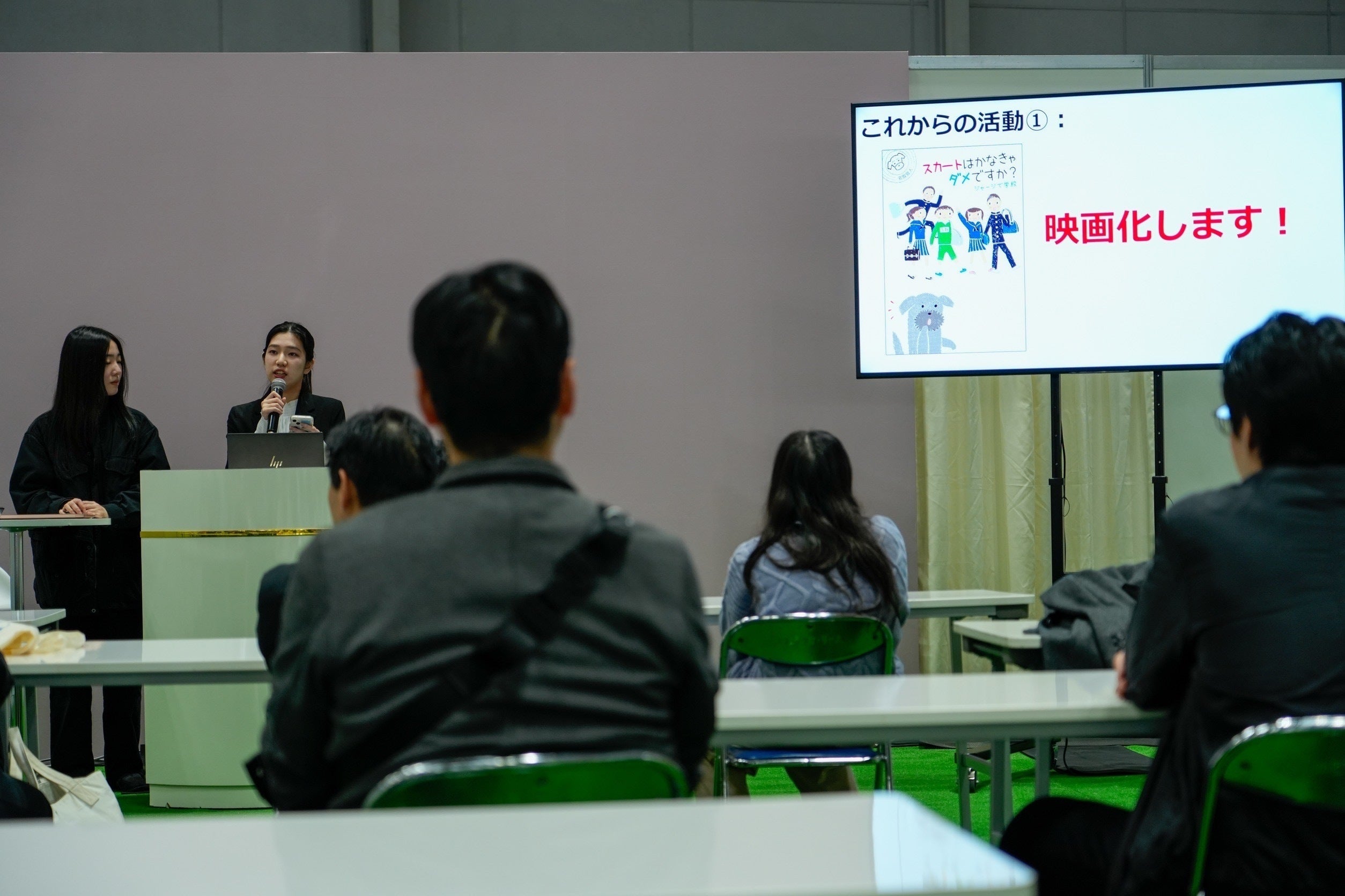 3月1日、パシフィコ横浜で開催された「CP+2025」にて、学生プレゼンテーションステージに登壇し、映画『スカートはかなきゃダメですか?』について発表させていただきました!当日は、初公開となるプロモーションビデオを会場で上映し、・映画を作ろうと思ったきっかけ・原作書籍の紹介・今後の制作スケジュールや完成に向けた目標などをお話しさせていただきました。実際に多くの方の前でプレゼンをすることで、自分の想いや映画の意義を再確認する機会にもなり、とても貴重な経験となりました。ご来場いただいた皆様、温かく見守ってくださった関係者の皆様、本当にありがとうございました!そしてそして、クラファン開始2日目も沢山のご支援ありがとうございます。引き続き、映画制作とクラウドファンディングへの応援、よろしくお願いいたします!