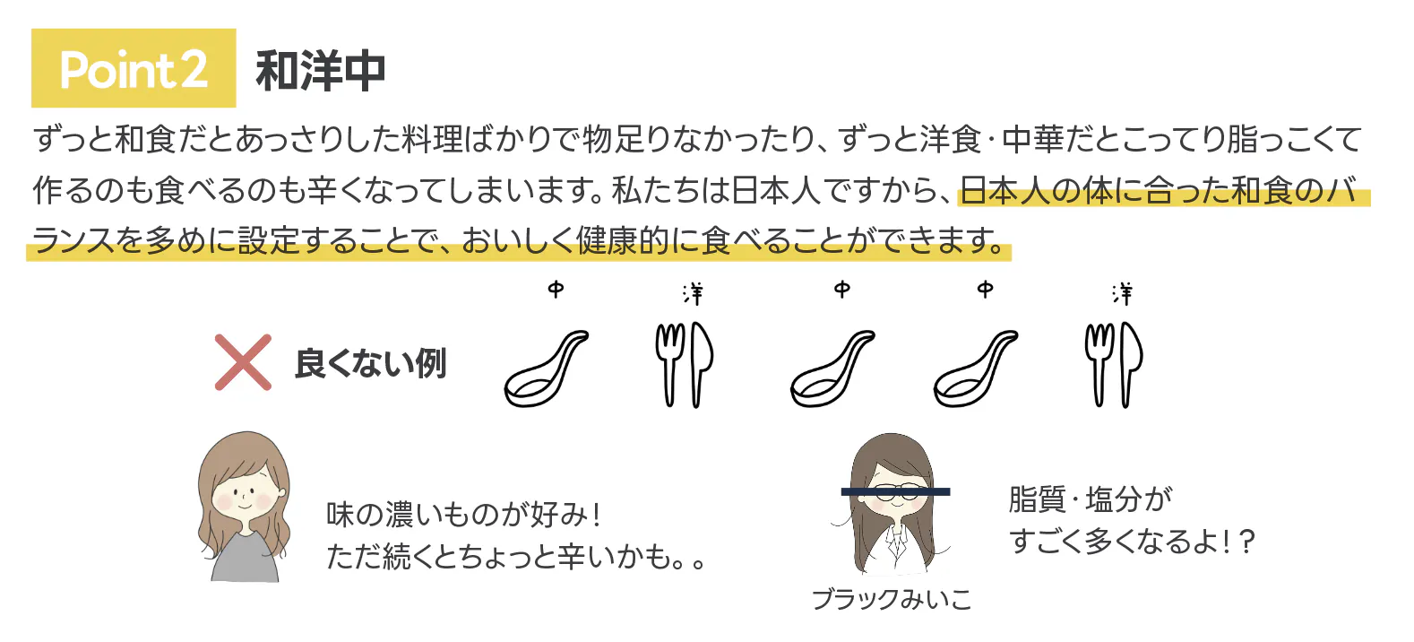 ②和洋中の割合・・・和食の割合が多くなるように意識して健康的に食べる