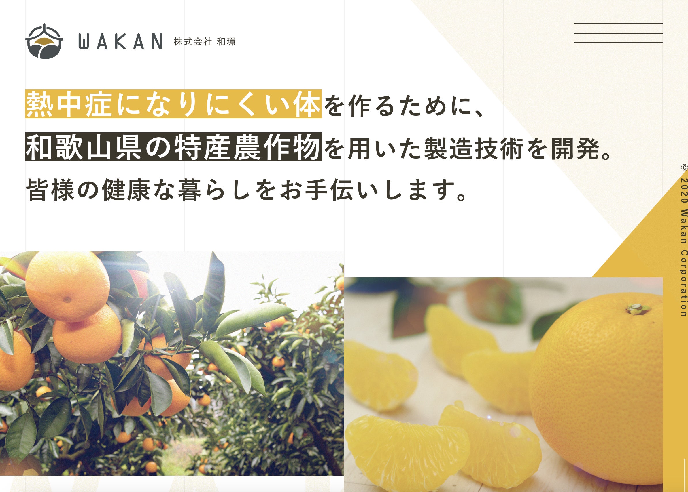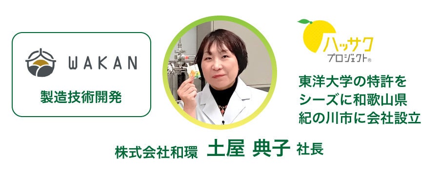 株式会社和環は東洋大学のもつ特許をシーズに和歌山県紀の川市に会社を設立。ハッサク果皮より抽出したオーラプテン含有ハッサク果皮抽出物という食品素材の研究、販売をしている会社です。(東洋大学:熱中症の予防、軽減及び/又は治療のための組成物 特許第6557893号)