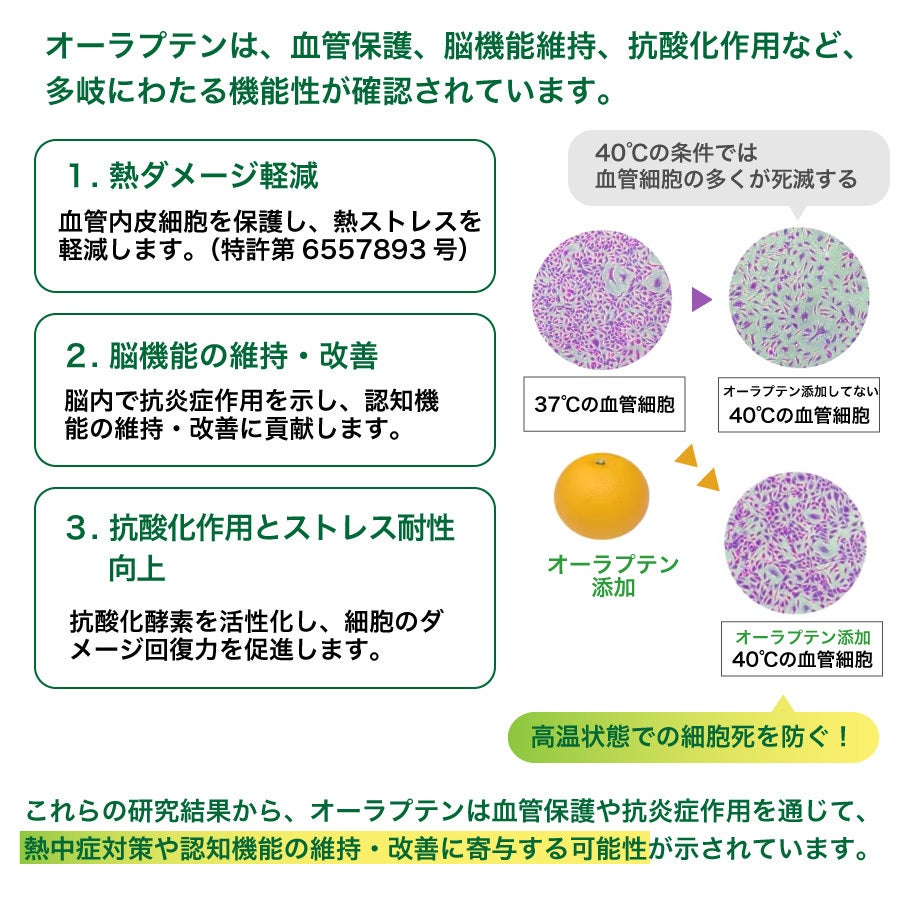 私たちは毎年、東京でたびたび開催される「スーパーマーケットトレードショー」や「食品系EXPO」に足を運び、新たな食材との出会いを求めています。そんなある日、バイヤーの高田が「これはすごい!」と興奮しながら電話をかけてきました。 それが 「はっさくの果皮から取れる特許成分・オーラプテン」との出会いでした!オーラプテンは、熱中症や夏バテを防ぐ可能性を持つ注目の成分で、和歌山県と東洋大学が7年間研究を重ねてきたもの。これこそ「私たちが全国の皆さんの健康を支えながら、生産者と共に成長できる商品」 になると確信しました!✨