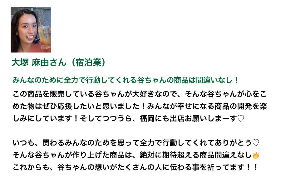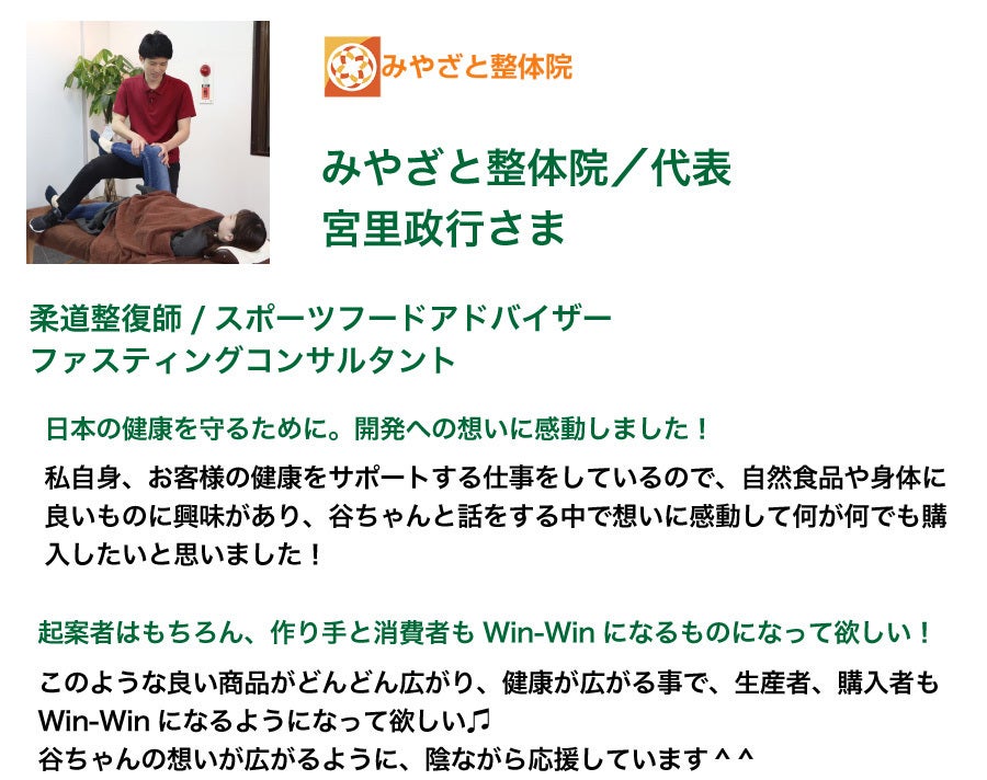 トップアスリートの方が所属されている「Athlete Circulation Japan」の皆様は、もともと当社の別の商品を認めてくださっていたのですが、今回のはっさく果皮由来の特許成分にも非常に注目してくださいました。つつうらさんで開発してくれるならば安心だと、皆さんこのクラウドファンディングを応援してくださっています。