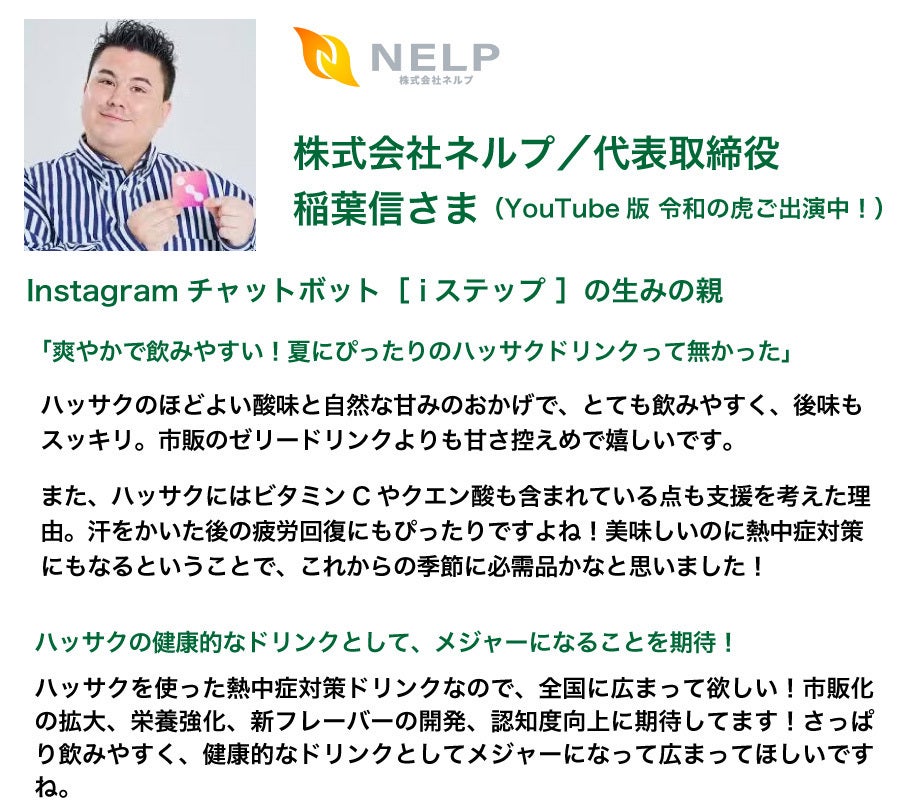 株式会社ネルプ/代表取締役 稲葉信さん(令和の虎にも出演中)