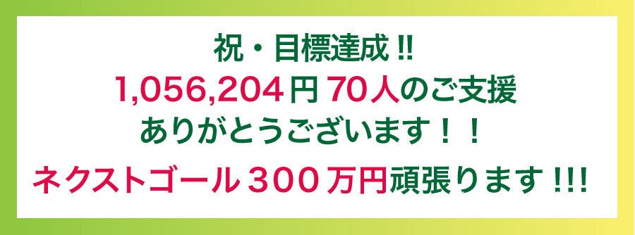 皆様の応援のおかげで、ファーストゴールとしていた100万円を達成することができました!!