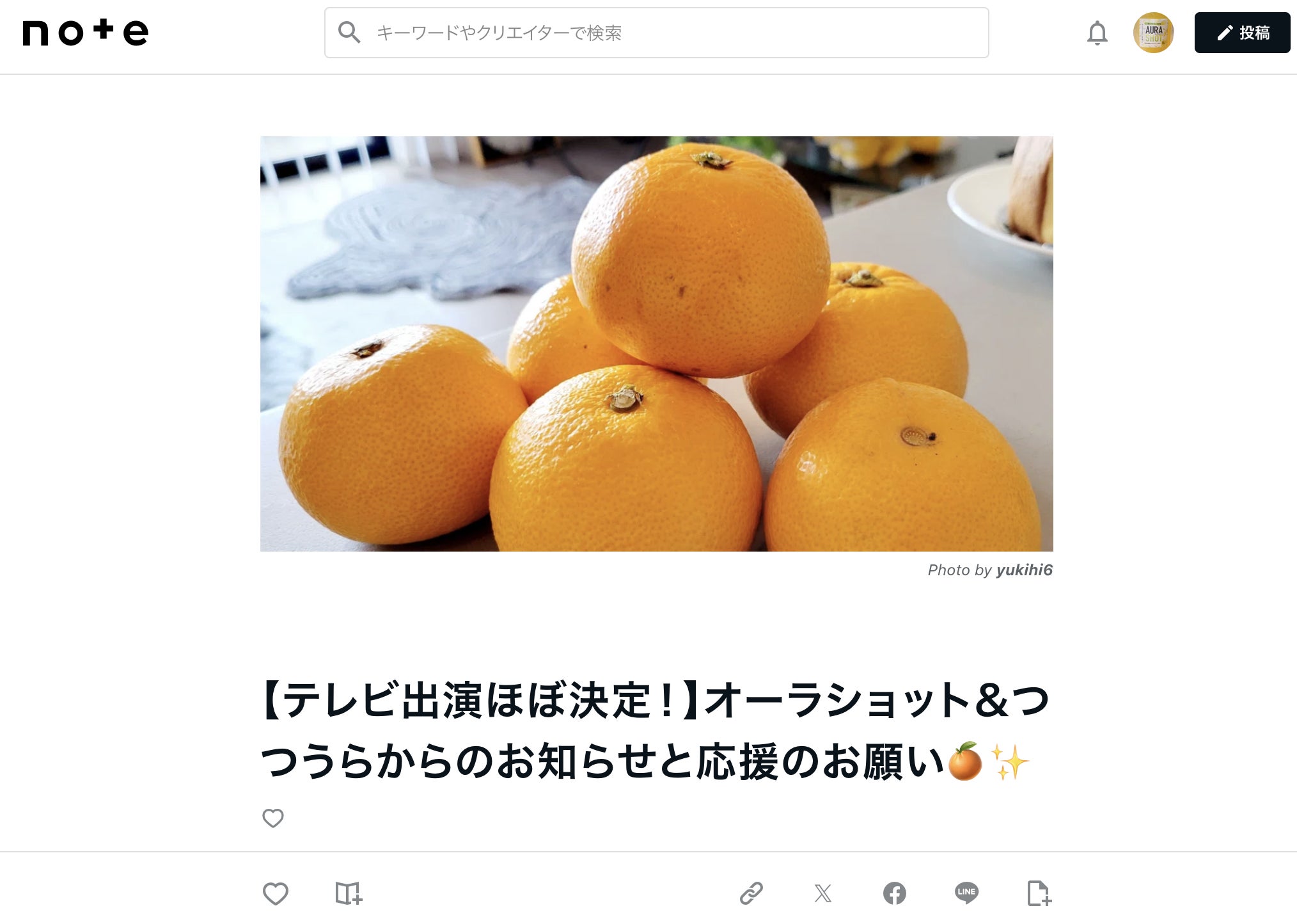 2025/06/13 16:53--------------------------------------------------【テレビ出演ほぼ決定!?】オーラショット&つつうらからお得に買える公式LINEのお知らせ--------------------------------------------------こんにちは!オーラショット開発チームより、嬉しいお知らせをお届けします!詳しくはオーラショットブログにて!https://note.com/aurashot/n/n5e9424227464このたび、私たちが運営している「お取り寄せスーパーつつうら」が、7月上旬に地上波のテレビ番組で紹介されることが(ほぼ)決定いたしました!!先日、芸能人の方を含むテレビスタッフが来店し、つつうらのこだわり商品やオーラショットなどを実際に試食してくださる様子が撮影されました。あなたが手にしてくださったオーラショットも、もしかすると映っているかもしれません…!放送日が確定しましたら、また公式ブログやSNSでご案内させていただきますので、どうぞお楽しみに!放送前に、お気に入り商品をぜひご準備ください!テレビ放送後は、注目度が一気に高まり、商品のご注文が殺到する可能性があります。そのため、必要な商品は、放送前にぜひご準備をお願いいたします。ご愛用いただいている皆さまに商品が届かない…ということがないよう、今のうちにお知らせを差し上げました。今後も、安心で美味しい商品をお届けできるよう、心を込めて取り組んでまいります。はっさくゼリードリンクは、こちらのLINE公式アカウントからお得に購入できます!https://lin.ee/zfG9yAk[喜びます]つつうら・オーラショットへの応援メッセージをお寄せください!テレビ出演を機に、店頭モニターやSNSで放映する応援メッセージ動画を募集しております!1分ほどの動画の中で、以下の3つをお話しいただけたら嬉しいです。つつうらやオーラショットを、どんな風にご利用いただいているかお気に入りの商品や「みんなに食べてほしい!」と思う商品応援のひとこと(感じていることをそのままでOKです!)PR的な内容も含めて構いませんし、カメラの前で自然にお話いただけるだけで大丈夫です。動画は、上記の公式LINEからメッセージにてお送りください!私たちの挑戦を、皆さまと一緒に形にしていけたら嬉しいです。引き続き、オーラショット&つつうらをどうぞよろしくお願いいたします詳しくはオーラショットブログにて!https://note.com/aurashot/n/n5e9424227464 もっと見る商品の発送時期のお知らせ