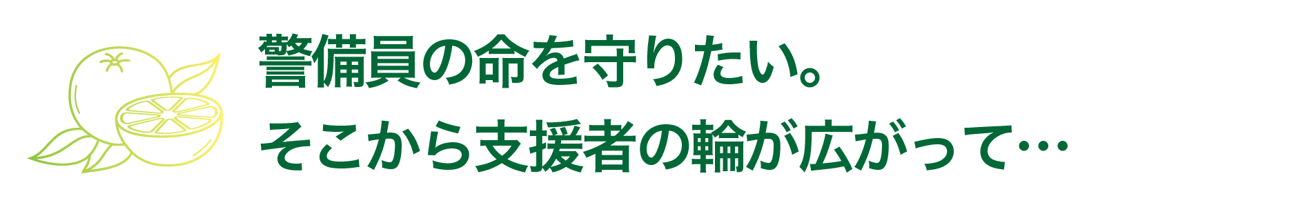 谷脇が最初に考えたのは、商品を販売するのではなく、自社の警備員に配りたいという想いでした。これから先、もっと過酷になる警備の現場をどうにかして安全なものにしたいという強い思いを土屋社長にお伝えしたことが身を結び、このクラファンの立ち上げや、商品開発に繋がったとも言えると思います。