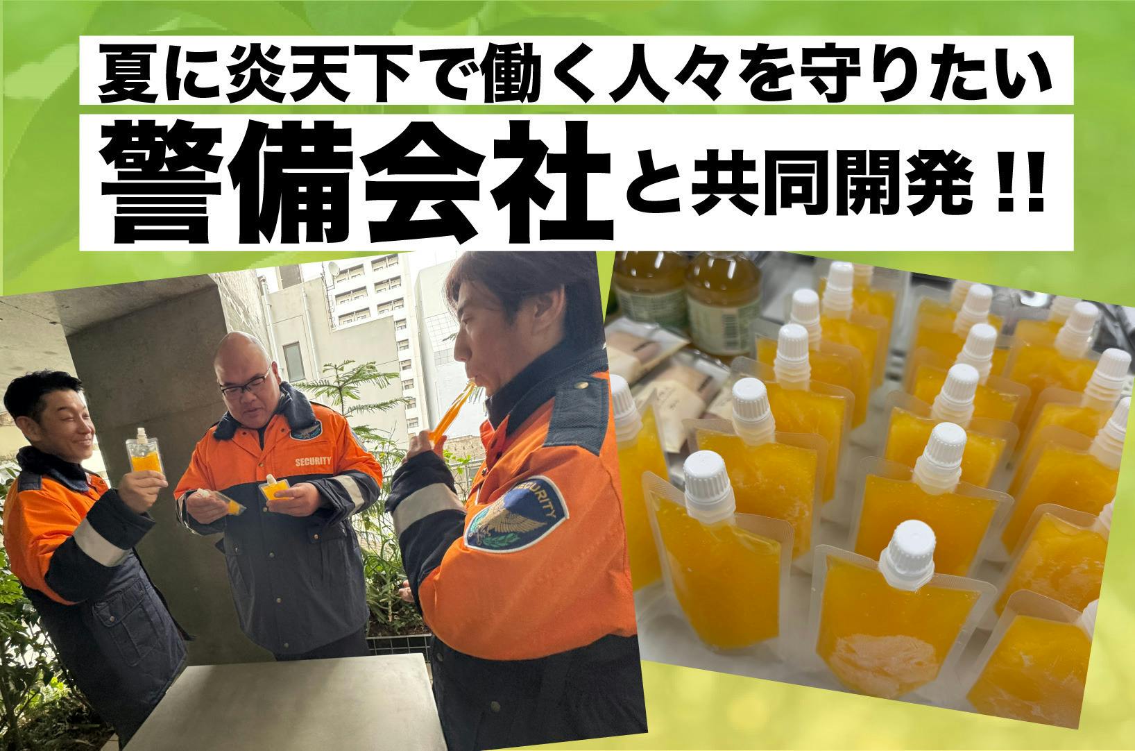 警備の仕事は、皆さんがご存知の通り、屋外で行う仕事が多くあります。炎天下や極寒の中でも常に街や現場の安心安全を守る素晴らしい仕事なのですが、屋外であることがゆえに本当に過酷で、2024年の夏は特にひどく、現場の警備員から 「立っているのがやっと」「めまいがする」「息苦しい」 という声が相次ぎ、深刻な事態だと捉えていました。すぐに熱中症対策として、熱中症アラートが出た地域の警備員にPayPayで手当をするルールを引きました。この対策が功を奏し、昨年の夏は重症者ゼロ で乗り切ることができましたが、これは抜本的な解決策ではありませんでした。そんなときに出会ったのが、はっさくの成分「オーラプテン」でした。