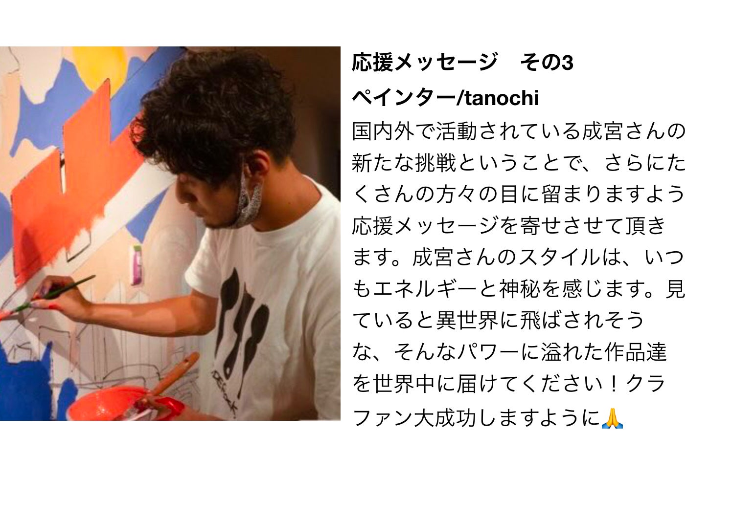 東京での個展や海外での展示は、僕とって大きな挑戦であり、また大きなチャンスでもあります。これまで多くの方々に応援いただいてきましたが、更に広がりを持たせるために、クラウドファンディングの力を借り、プロジェクトを実現したいと考えています。
